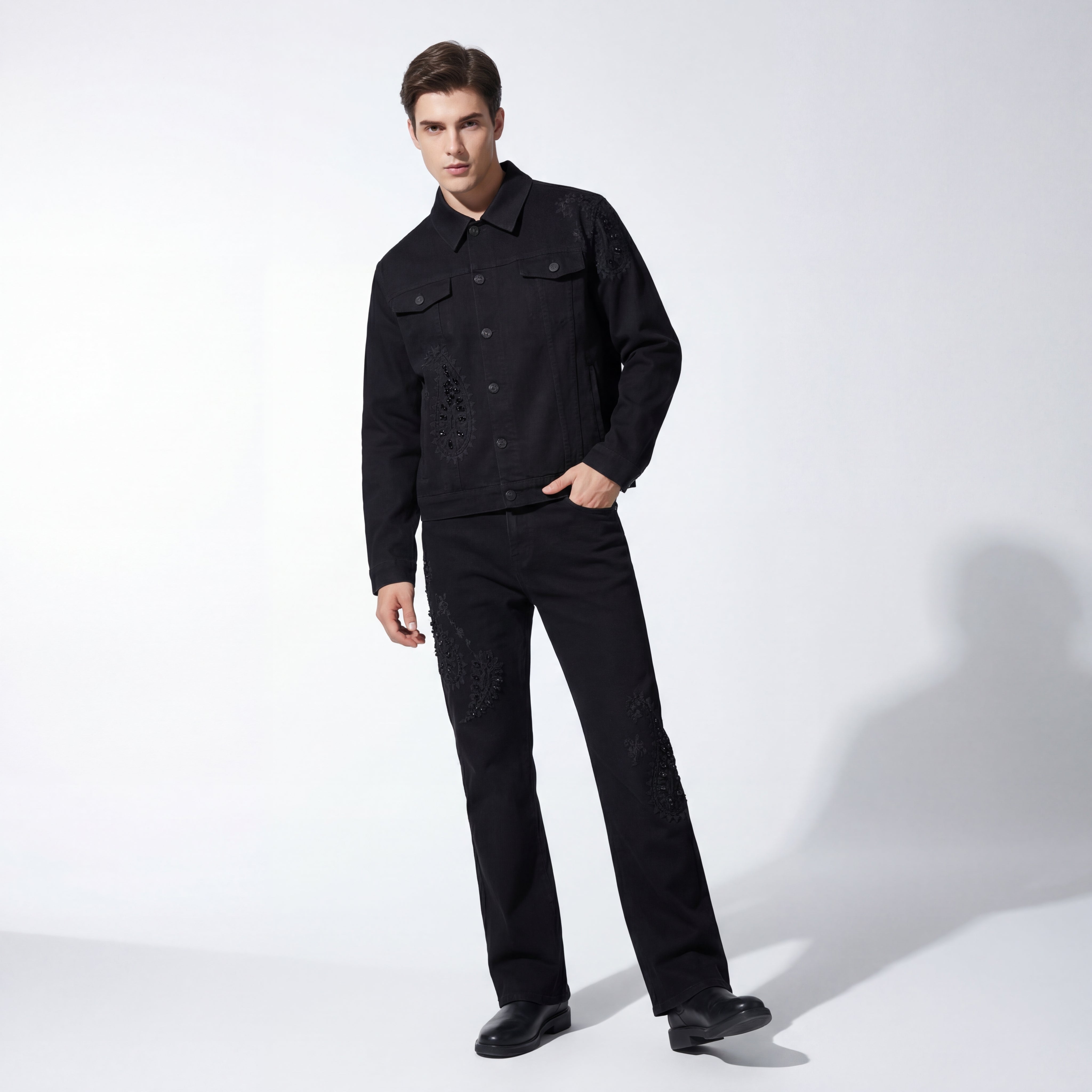 Boost your wardrobe with the Eminence Paisley Denim Set—the ultimate in luxury paisley embroidered denim for men and women. Perfect for those searching for designer denim jacket and pant sets, luxury embroidered denim, or statement denim outfits. Combine classic style with modern craftsmanship in this exclusive collection.
