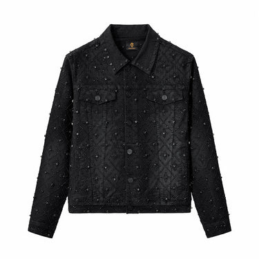 A timeless denim silhouette elevated with opulent detail. The Radiant Embellished Denim Jacket features a diamond-pattern design, fully accented with tonal embellishments that bring texture and depth to its classic shape. Tailored for a refined fit, it reimagines denim as statement outerwear for the Century Penthouse wardrobe.