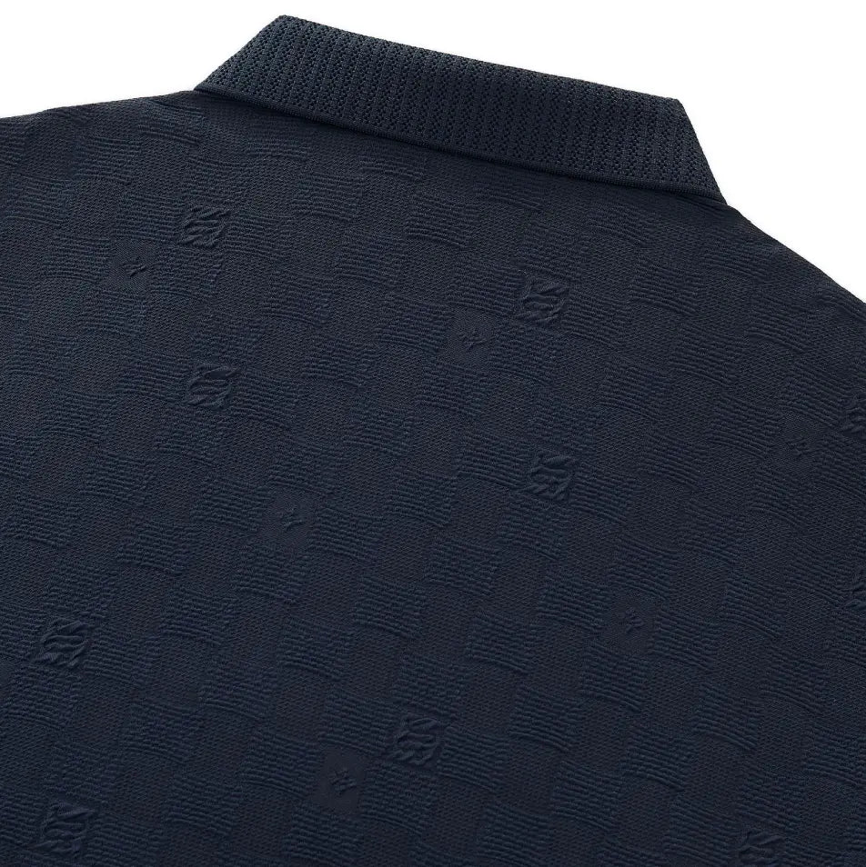 A refined polo designed with an elevated, fashion-forward sensibility, featuring a seamless, stitchless construction and an allover check texture that delivers a clean, modern finish with understated luxury appeal.