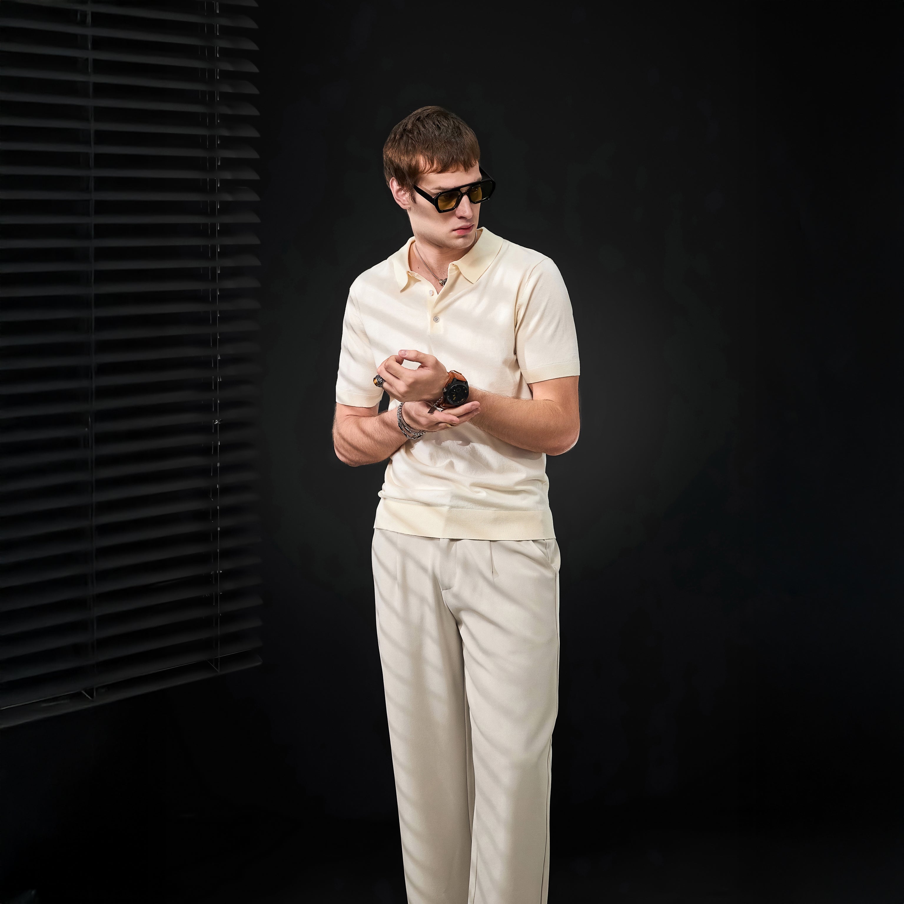 Designed for modern minimalists who appreciate comfort with a tailored edge, this set blends clean lines with easy movement. The crisp Everyday Luxe Polo in white brings a polished look with its smooth button-up front and subtle stretch, while the Kingsley Side‑Tab Trousers in taupe add relaxed structure and quiet sophistication. Together, they make an ideal outfit for work, casual gatherings, or weekend city walks—wherever style and comfort need to meet.