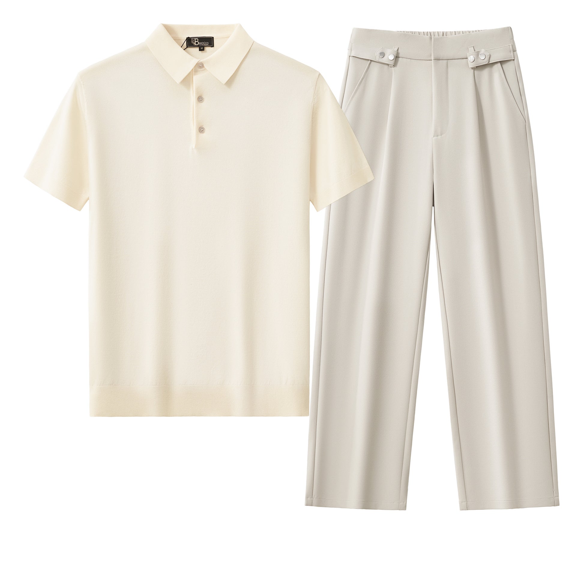 Everyday Luxe Polo + Kingsley Side-Tab Trousers SET - WHITE/TAUPE