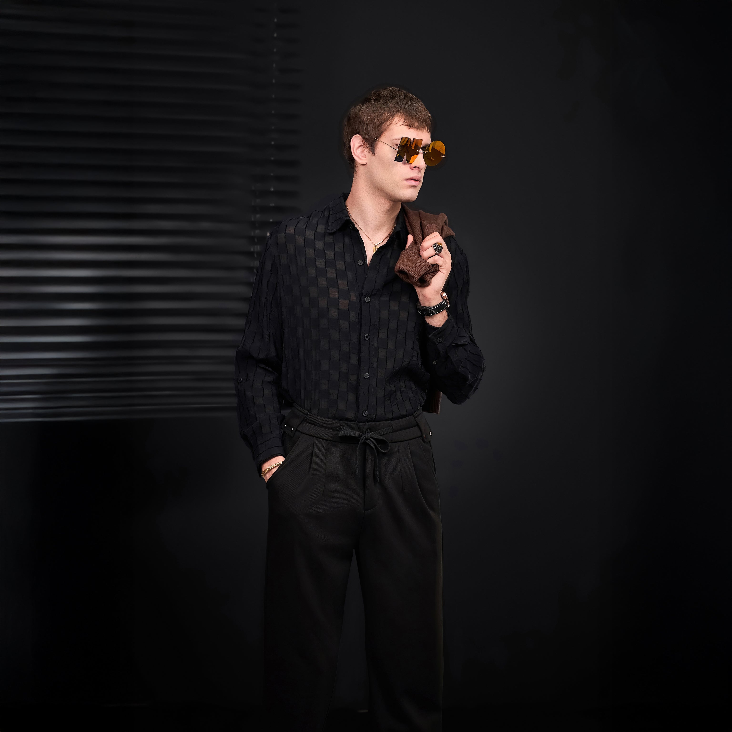 Looking for something that feels put-together without trying too hard? This all-black set brings just the right balance of relaxed style and everyday polish. The Haven Long Sleeve Shirt is made from a breathable textured fabric that adds subtle detail without being loud. It’s lightweight, drapes naturally, and works great on its own or layered under a jacket. The Solace Pleated Trousers finish the look with a wide-leg cut and clean lines, plus a drawstring waistband that keeps things feeling comfortable but still sharp.