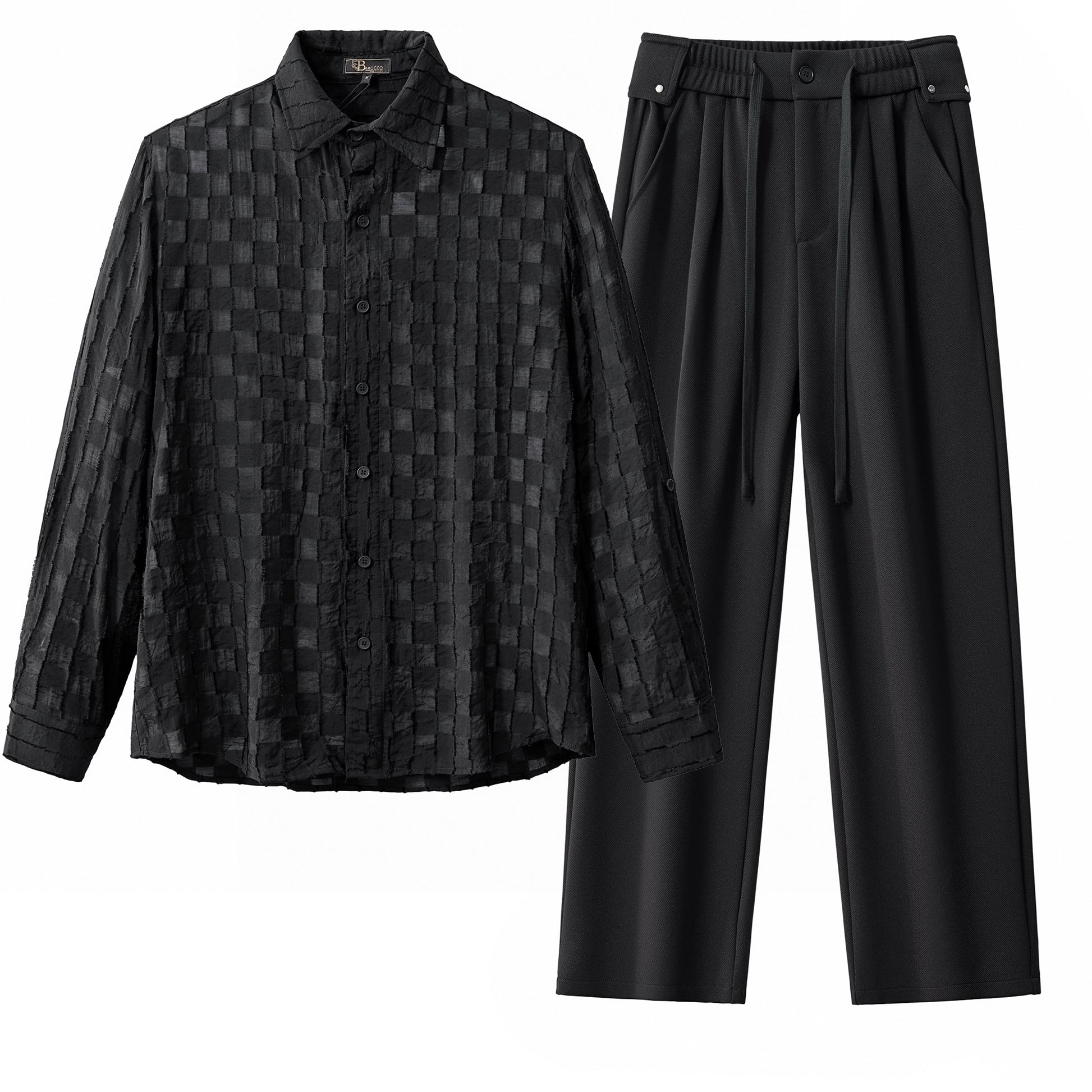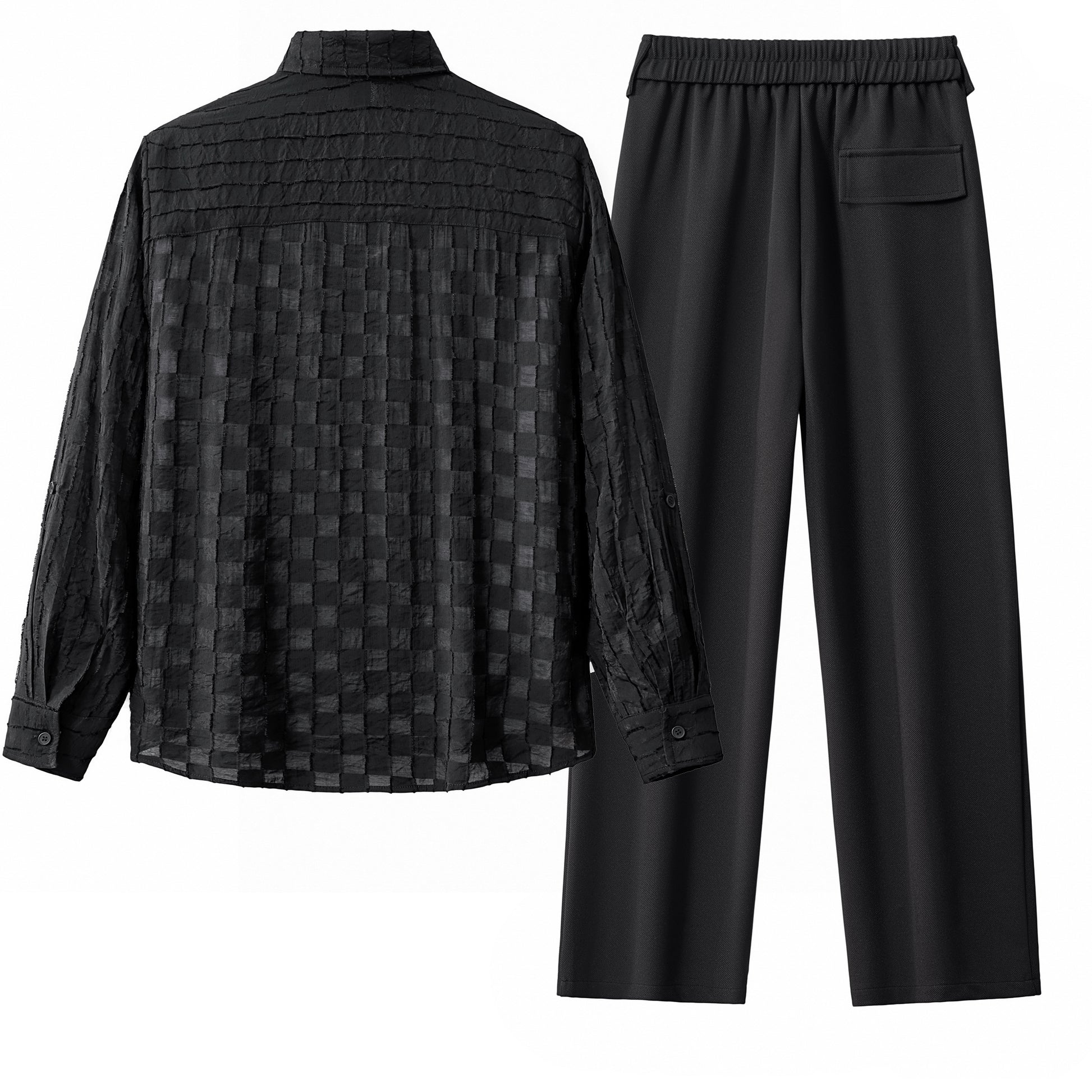 Haven Textured Long Sleeve Shirt + Solace Pleated Trousers SET - BLACK
