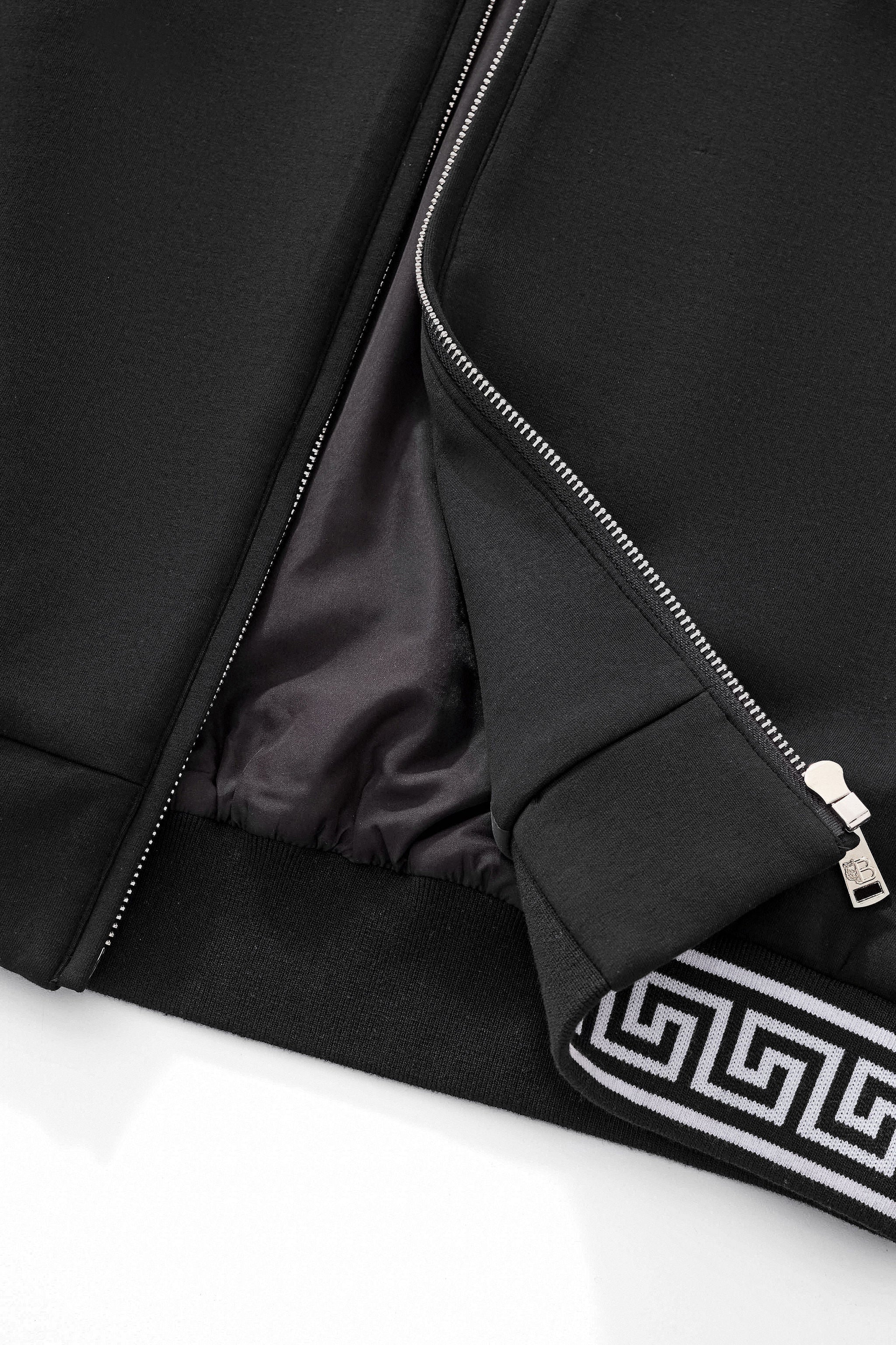 The Imperial Trim Lounge Set delivers elevated comfort with unmistakable Barocco character. Crafted in a smooth technical knit, it pairs a sleek zip-front jacket with tailored lounge pants—both framed by a bold Greca-inspired woven trim. The set balances luxury and ease, offering a refined off-duty look that moves seamlessly from day to night.