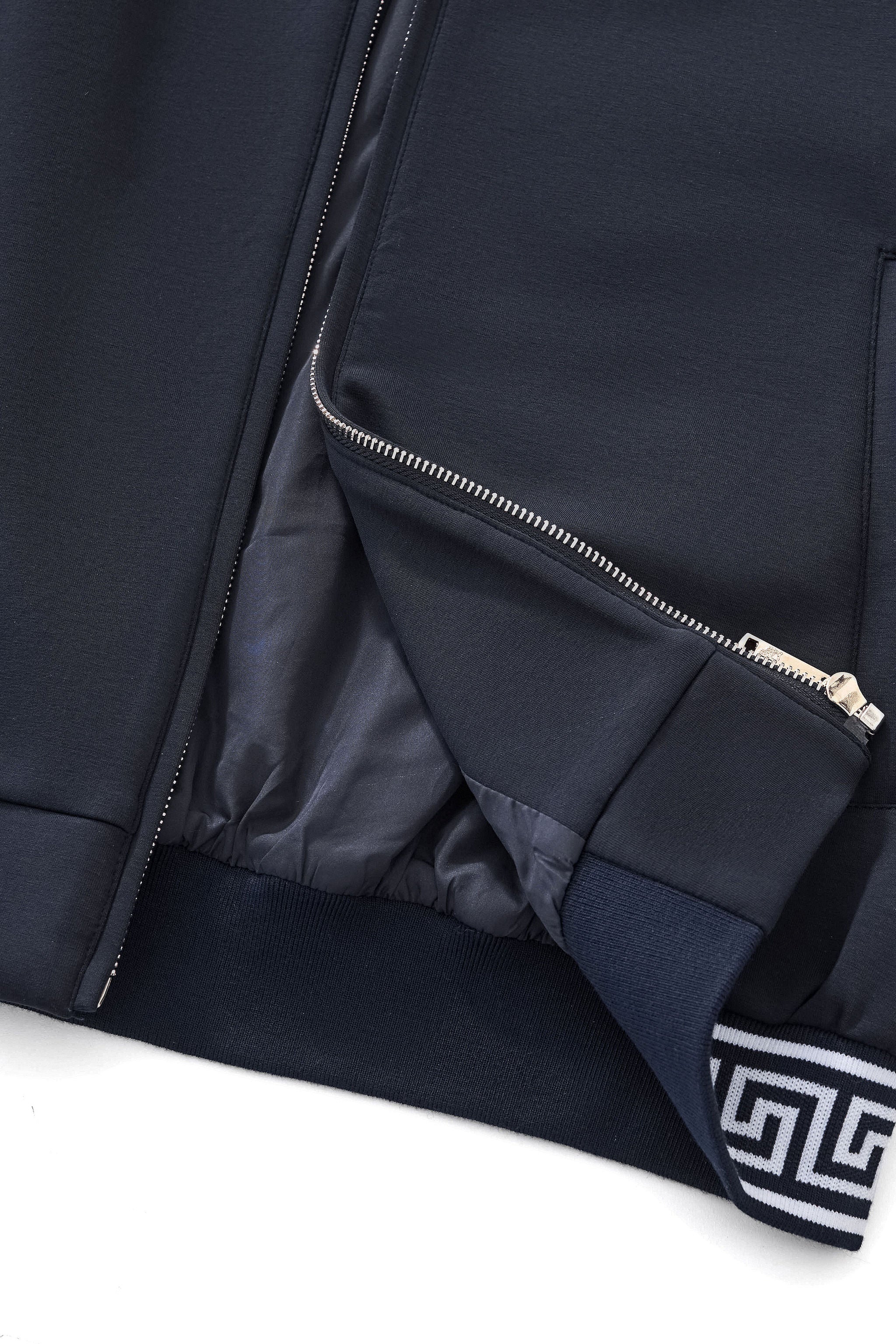The Imperial Trim Lounge Set delivers elevated comfort with unmistakable Barocco character. Crafted in a smooth technical knit, it pairs a sleek zip-front jacket with tailored lounge pants—both framed by a bold Greca-inspired woven trim. The set balances luxury and ease, offering a refined off-duty look that moves seamlessly from day to night.