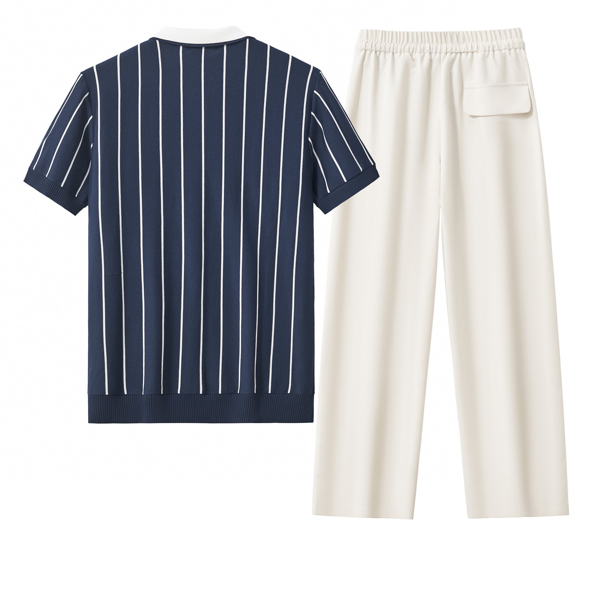 ModStripe Knit Shirt + Belmont Pleated Trousers - NAVY/WHITE/TAUPE