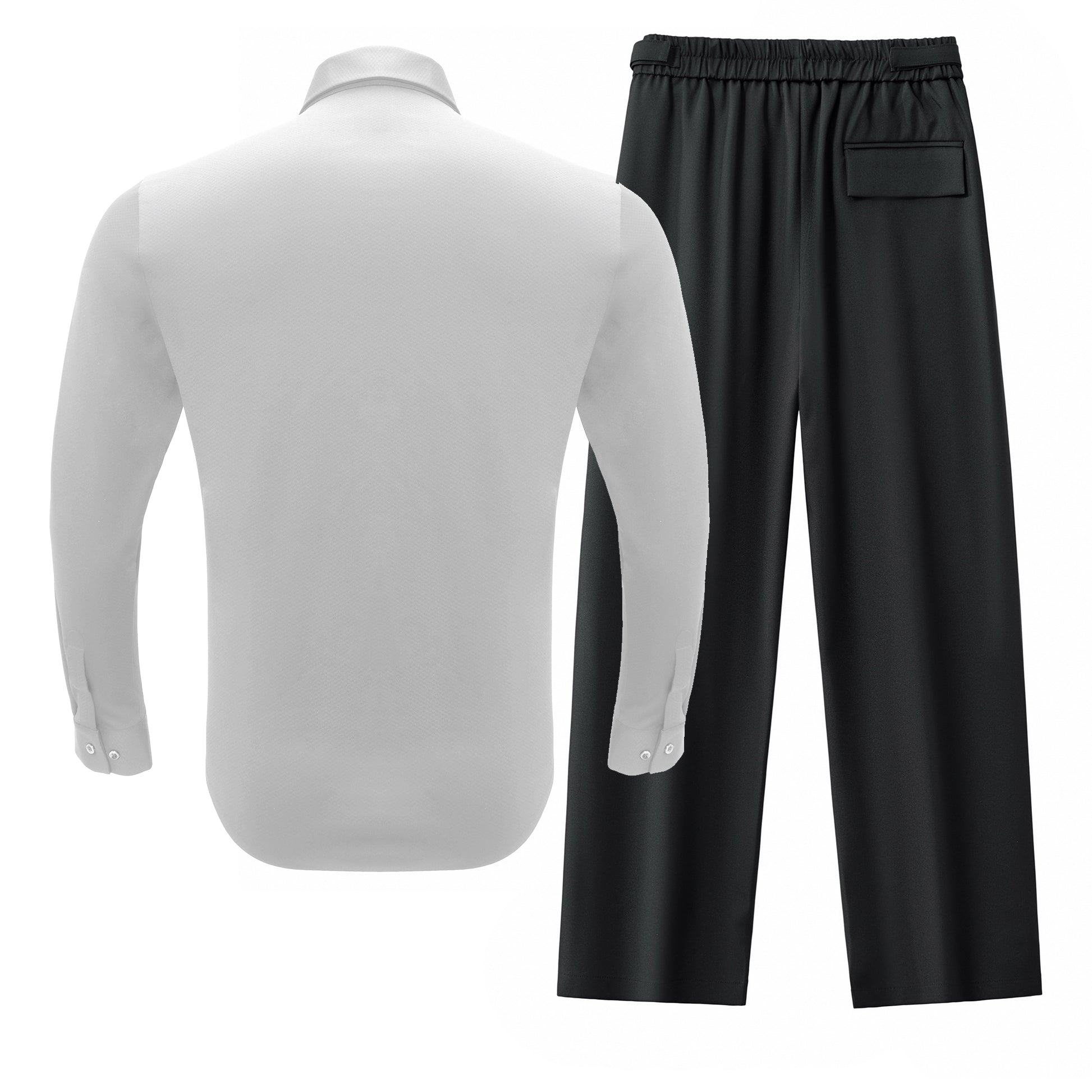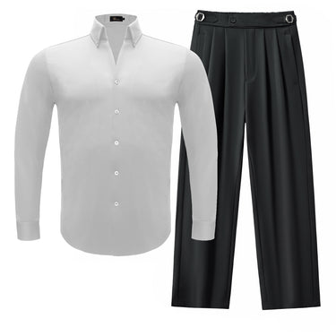 Noir Essence Long Sleeve Shirt + Wellington Side-Tab Trousers SET - WHITE/BLACK