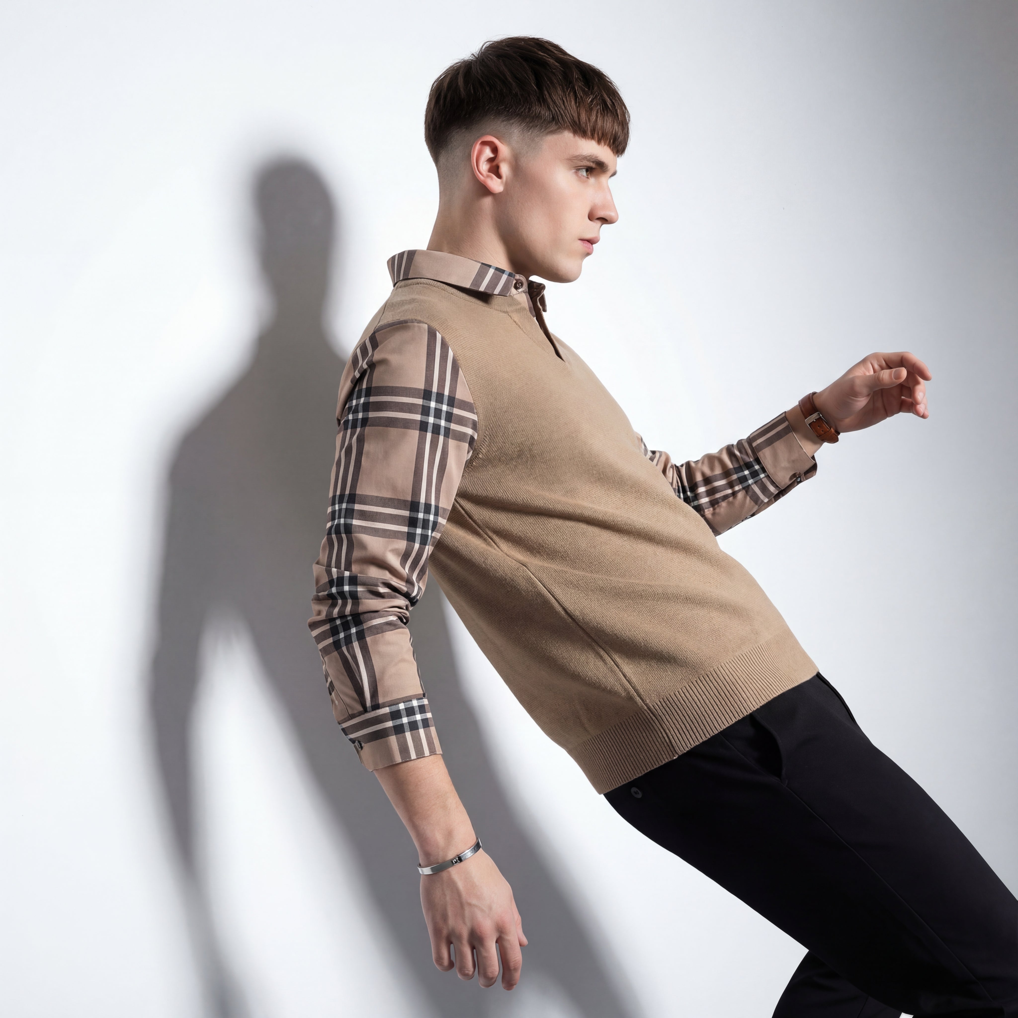 Structured plaid sleeves for a modern contrast