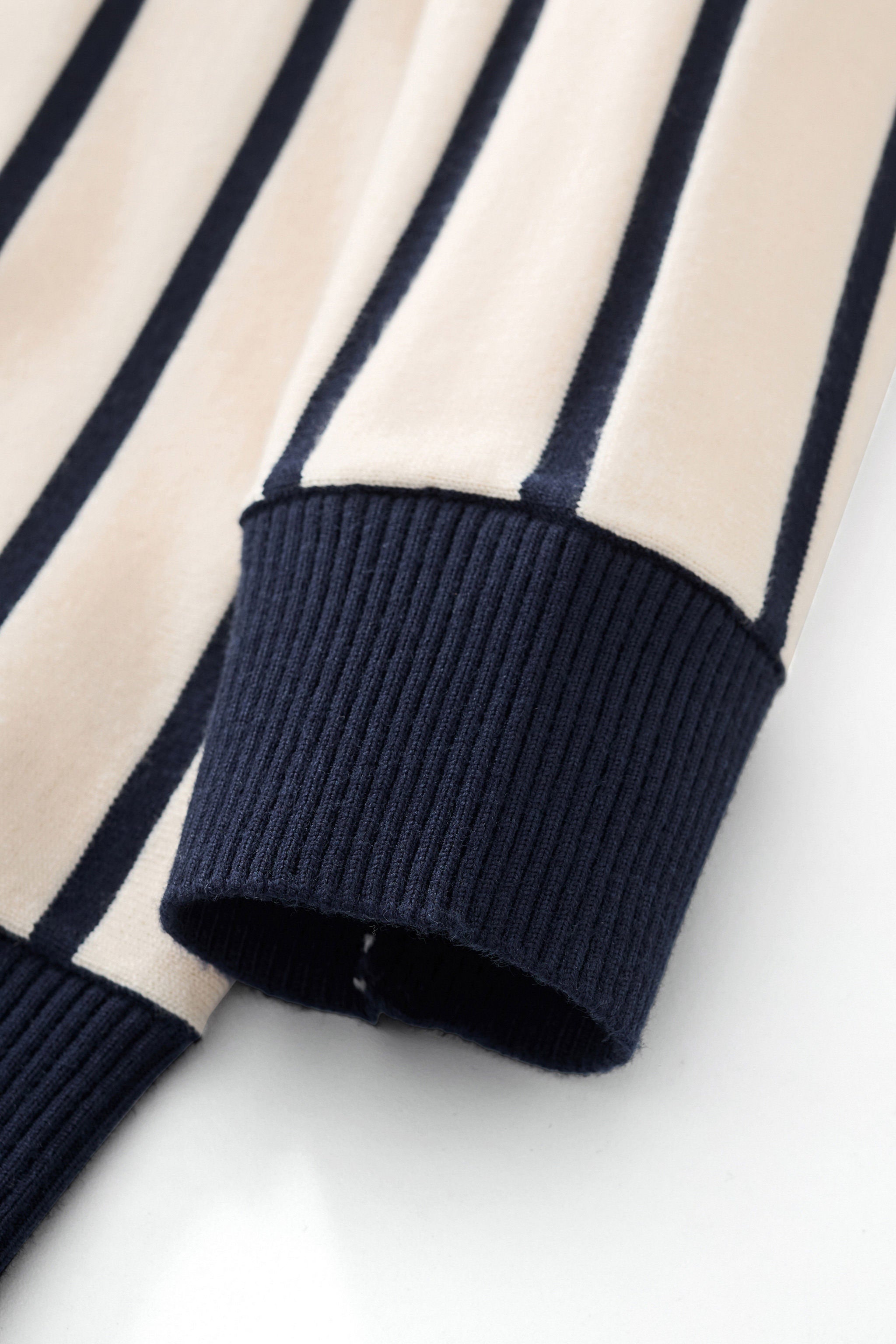 Description:The Imperial Stripe Knit Polo LS merges bold design with refined tailoring. Crafted from a smooth viscose-blend knit, it features sharp vertical striping framed by a solid contrast collar and placket. The structured drape and luxurious texture make it an essential statement piece within Barocco’s elevated streetwear aesthetic — timeless yet distinctly modern.