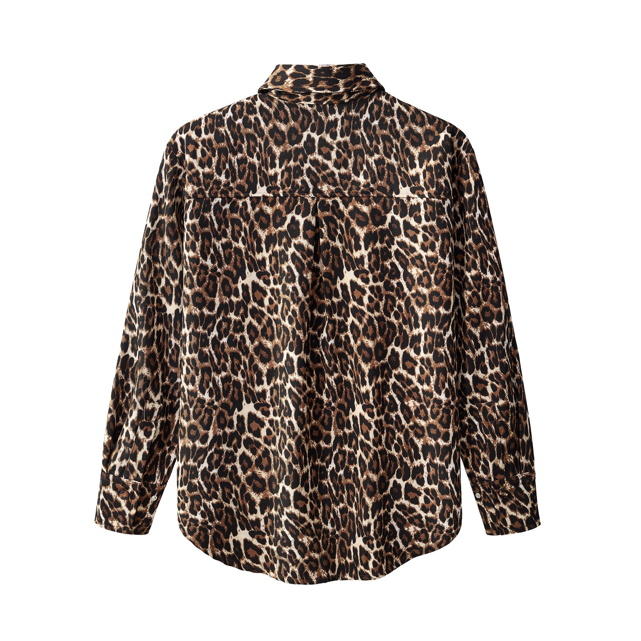 A refined statement jacket with a fluid drape and elevated utility influence, featuring an all-over leopard print that delivers bold presence and versatile modern styling.