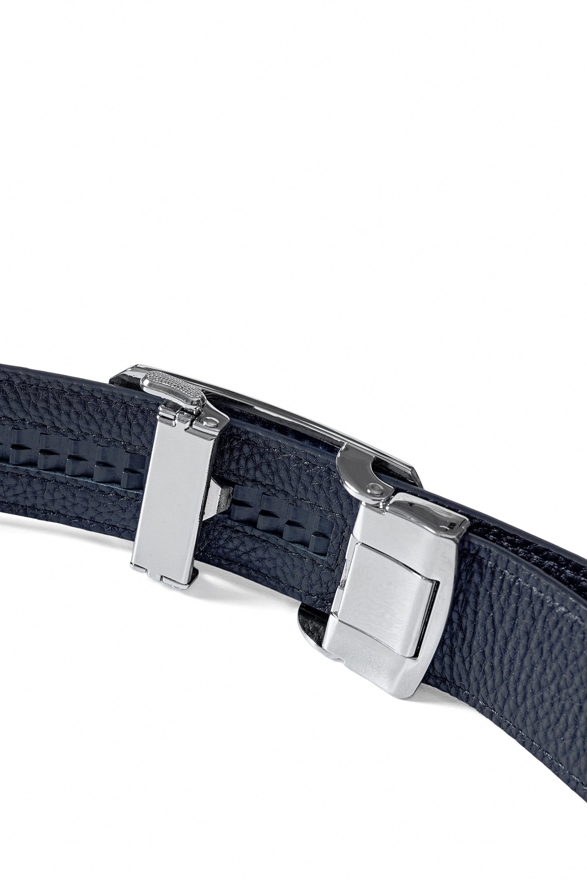 Ostrich-Embossed Leather Lion Auto BKL Belt – Silv SILVER/NAVY