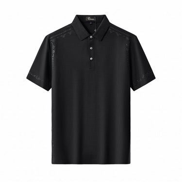 A refined interpretation of modern luxury, the Ornate Trim Polo elevates the classic silhouette with intricate tonal detailing along the collar, sleeves, and shoulders. Crafted from a smooth performance-stretch fabric, it delivers a polished drape, breathable comfort, and a sophisticated minimalist aesthetic suited for upscale or everyday styling.