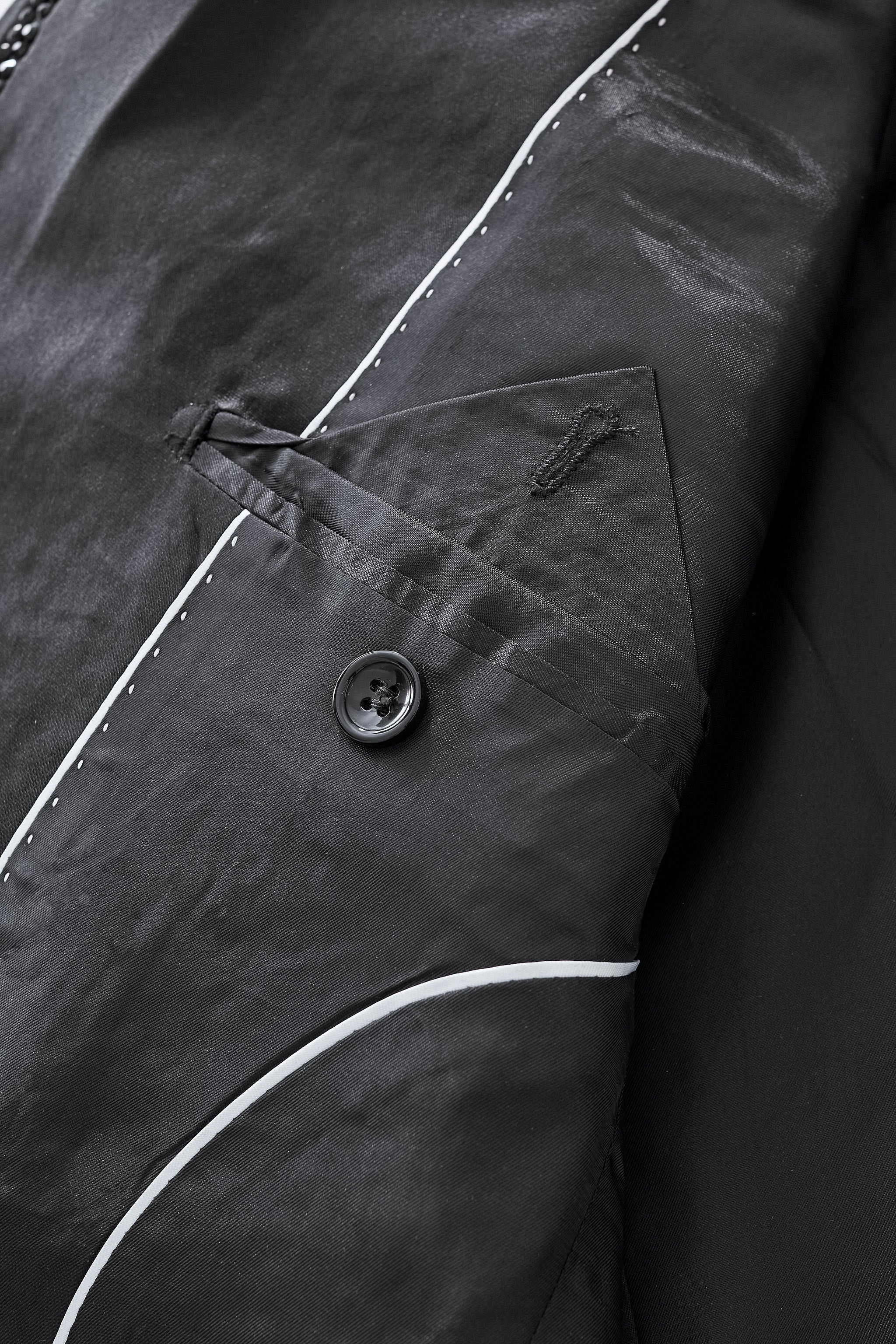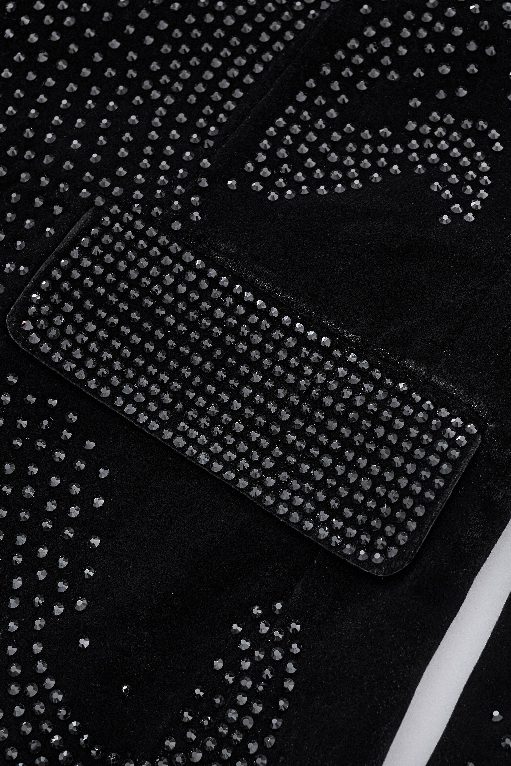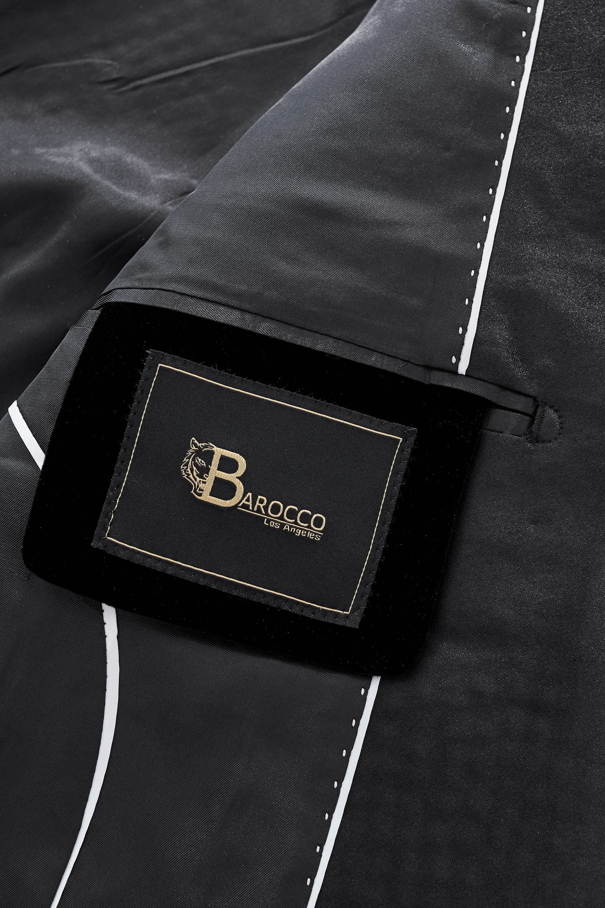 This blazer embodies Barocco’s signature statement luxury, merging intricate embellishment work with a sculpted, elevated silhouette. Thousands of precision-placed studs form sweeping cascade patterns across the front, sleeves, and back, creating dramatic dimension and a commanding visual presence. Its smooth velvet base and refined lapel detailing bring a distinguished finish suitable for high-end events, evening style, or any moment that calls for exceptional artistry.