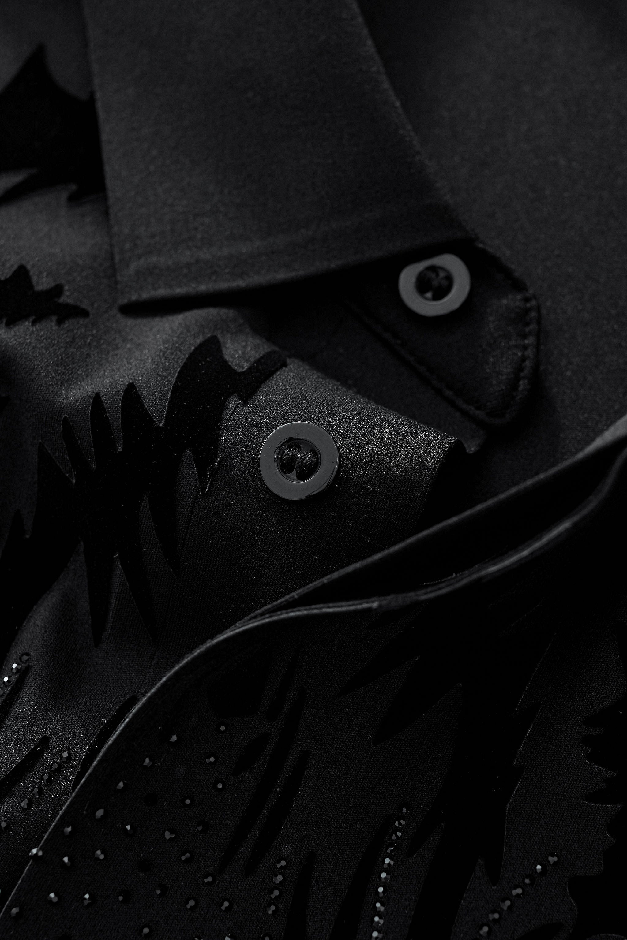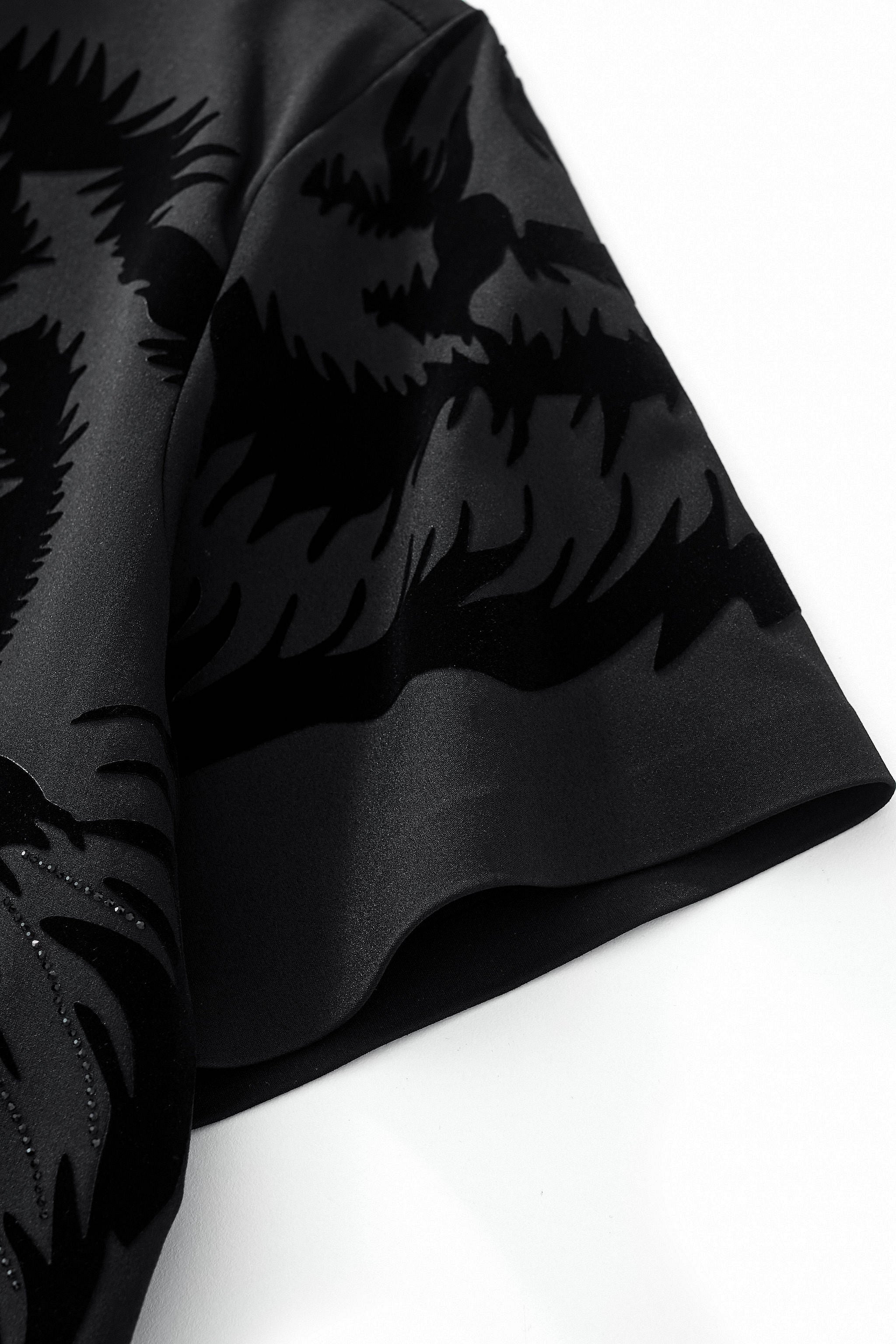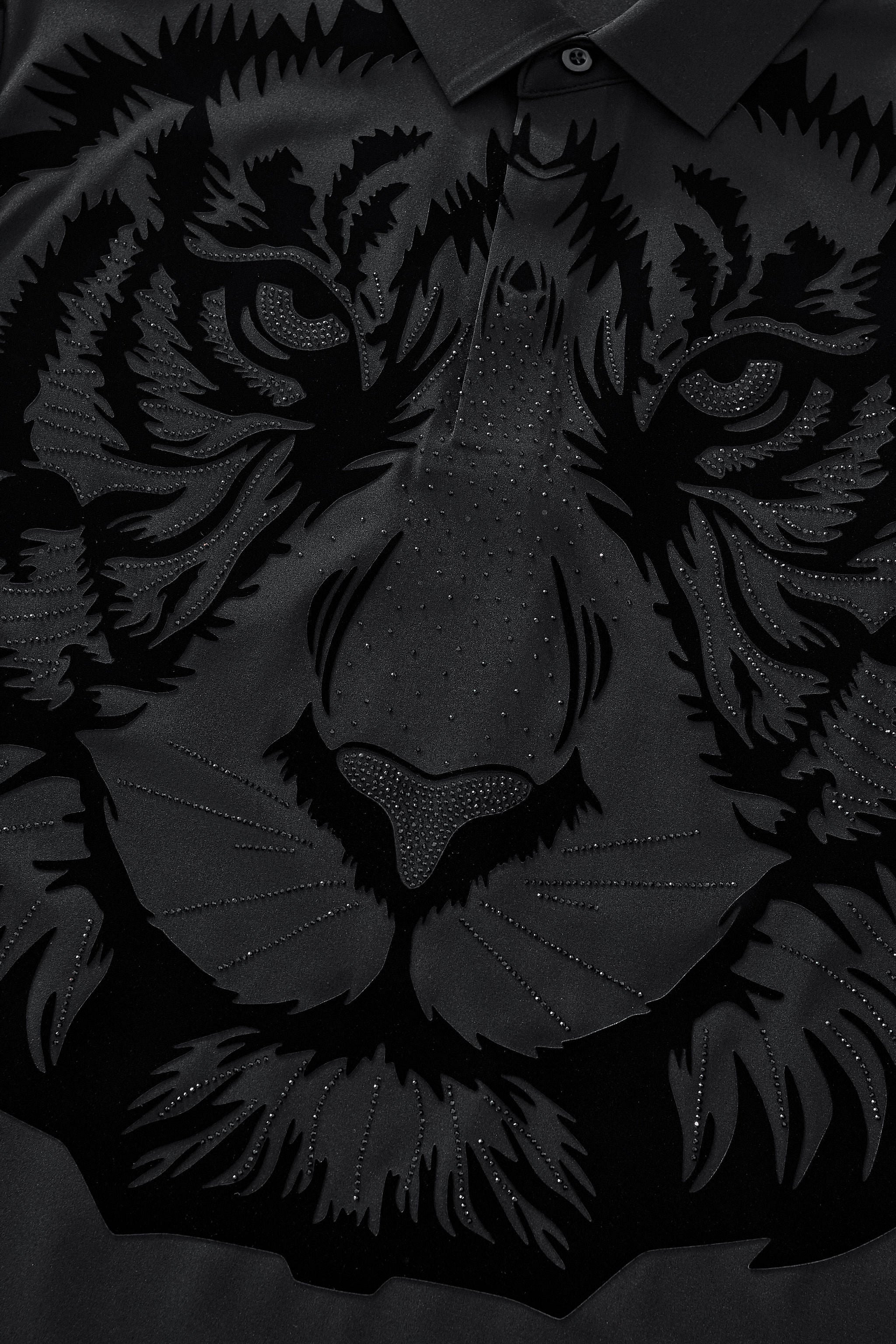 A bold reinterpretation of Barocco’s signature statement aesthetic, the Tiger’s Wrath Polo delivers a powerful visual impact with its sculpted tiger motif. Rendered in a smooth, stretch-performance fabric, the design blends luxury streetwear energy with a refined, modern silhouette. The intricate embellishment work adds depth and texture, creating a commanding presence while maintaining all-day comfort and mobility.