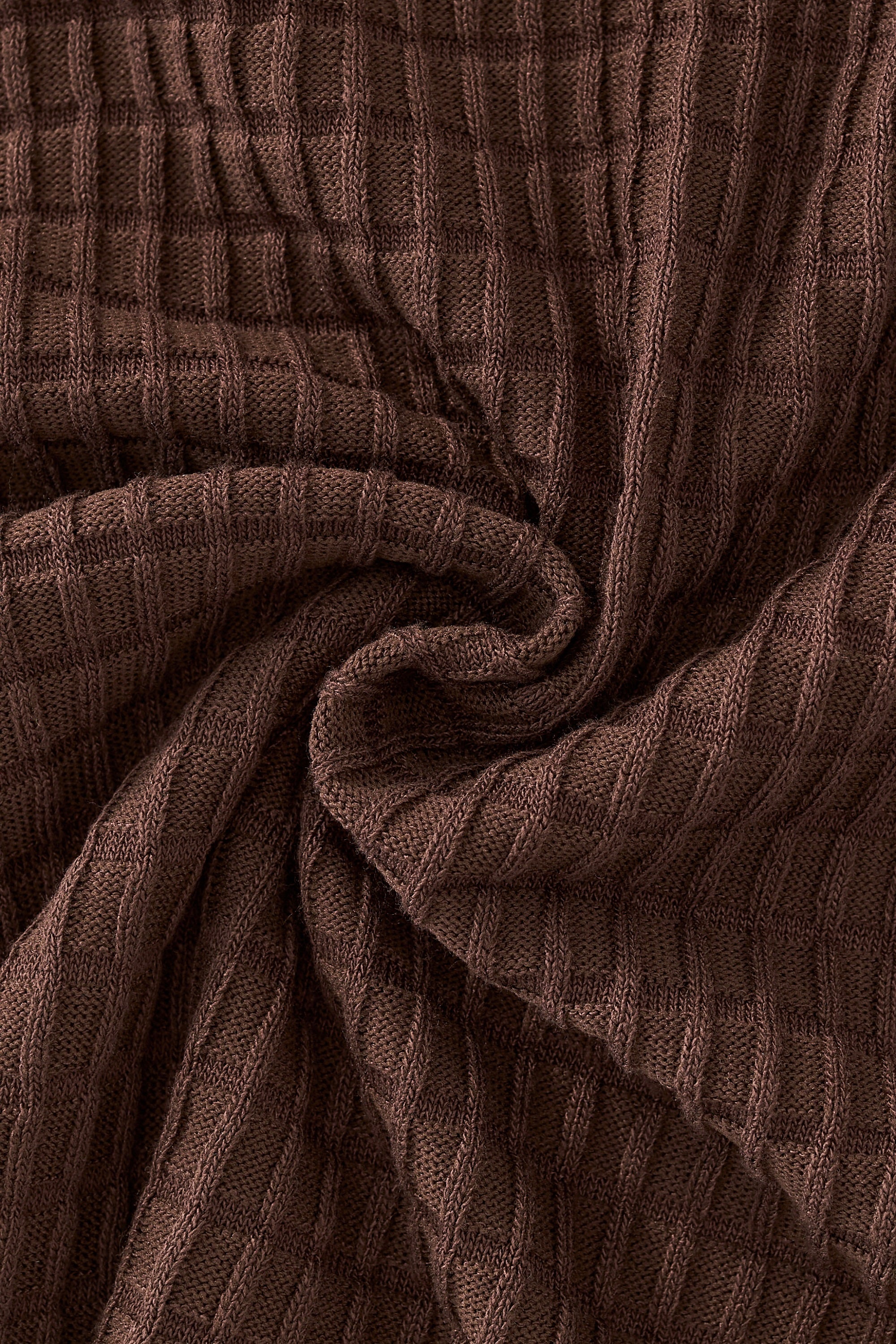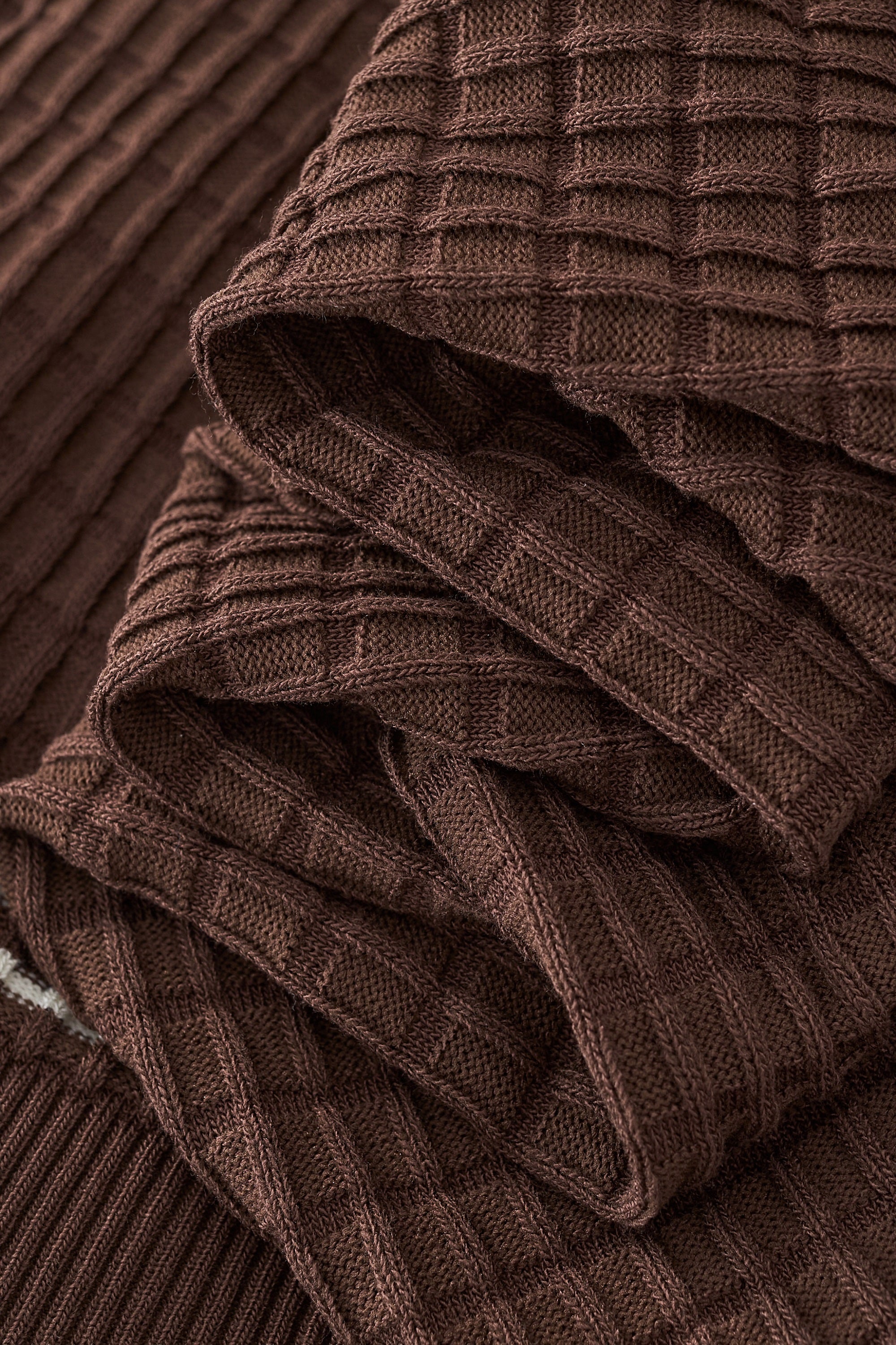 - Textured fabric design with contrast tipping on collar, sleeves, and hem