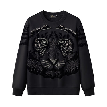 The Midnight Roar Deluxe Crewneck captures Barocco’s commanding aesthetic in a bold, artful composition. A tonal tiger motif dominates the front, illuminated by precision-set crystal embellishments that create texture and dimension. Crafted from a structured cotton-blend fleece, it merges luxury craftsmanship with modern streetwear energy — powerful, refined, and unmistakably Barocco.