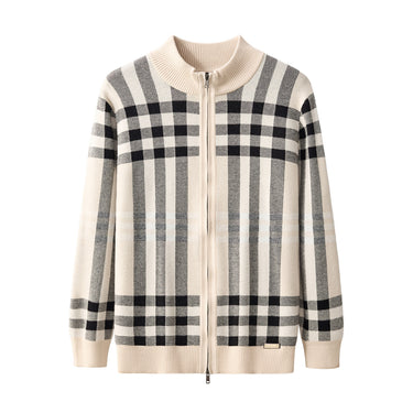 - Long sleeve full-zip knit jacket with all-over plaid pattern