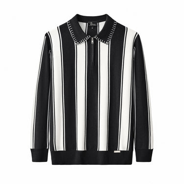 The Vanguard Stripe Knit Polo LS channels vintage sophistication through a modern lens. Crafted from a smooth viscose-blend knit, it features bold vertical stripes and contrast stitching along the collar for a refined statement. With its tailored drape and subtle sheen, this piece embodies Barocco’s signature fusion of timeless polish and contemporary edge.