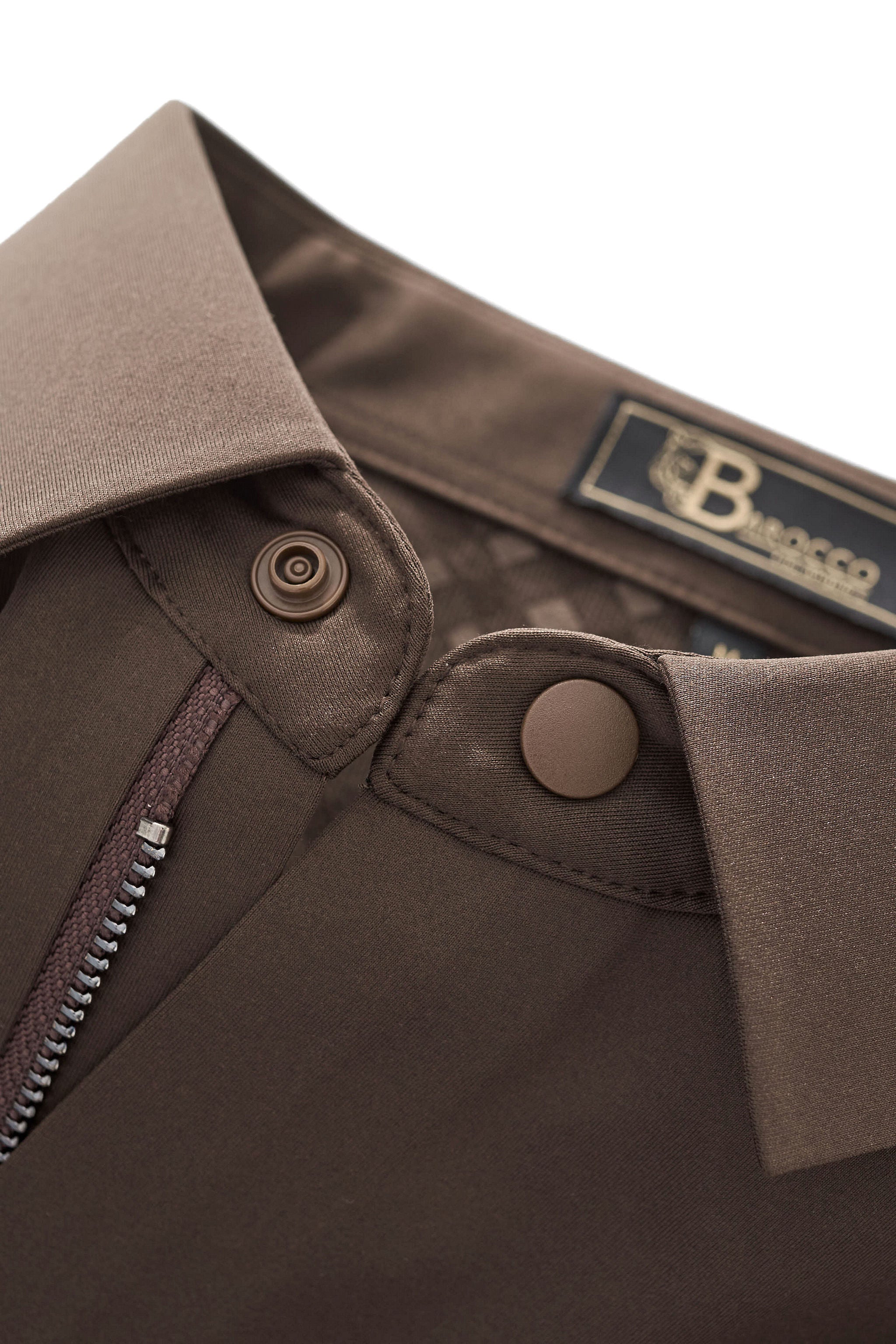 - Minimalist placket with tonal buttons