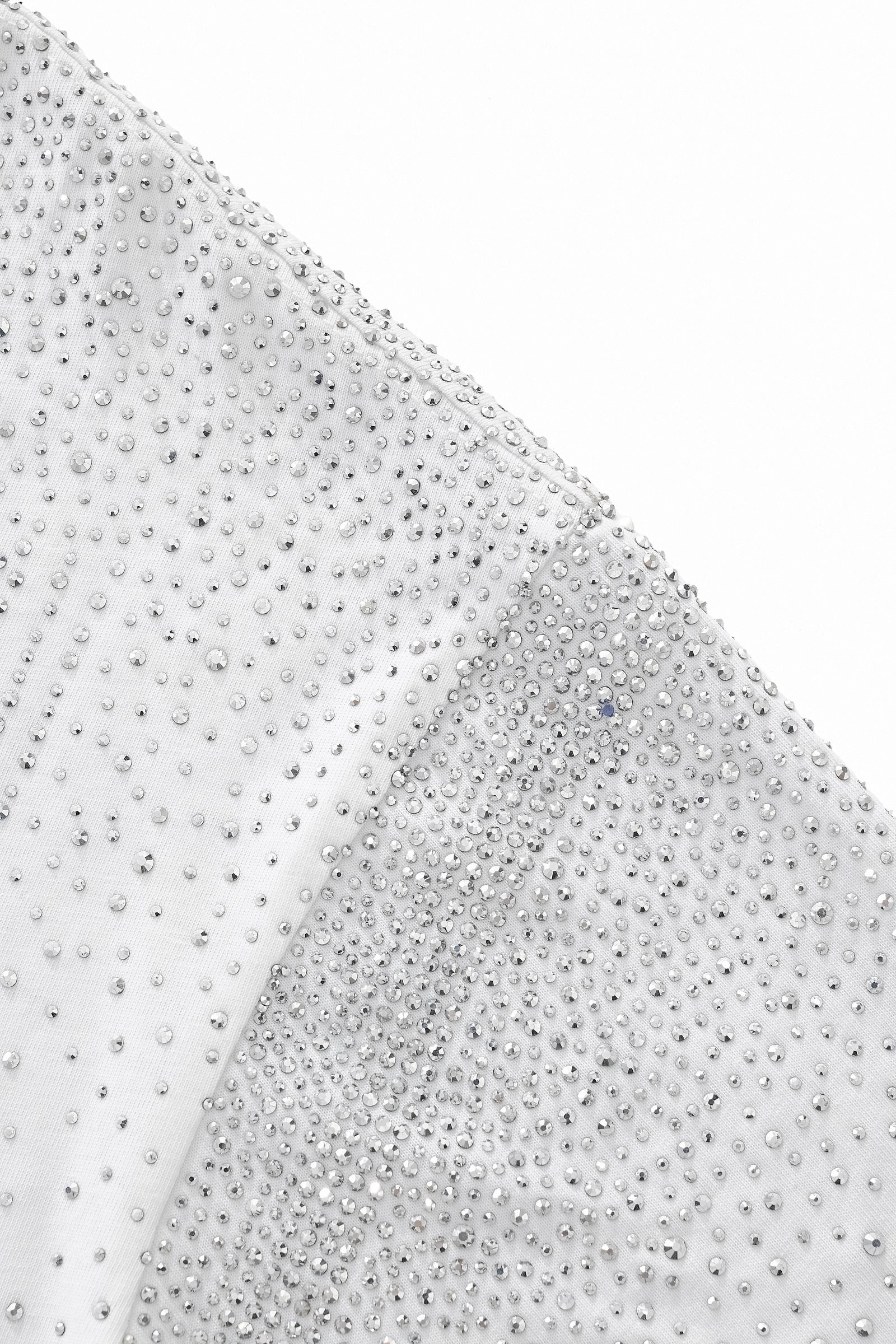 • Cascading stone embellishment across shoulders and chest