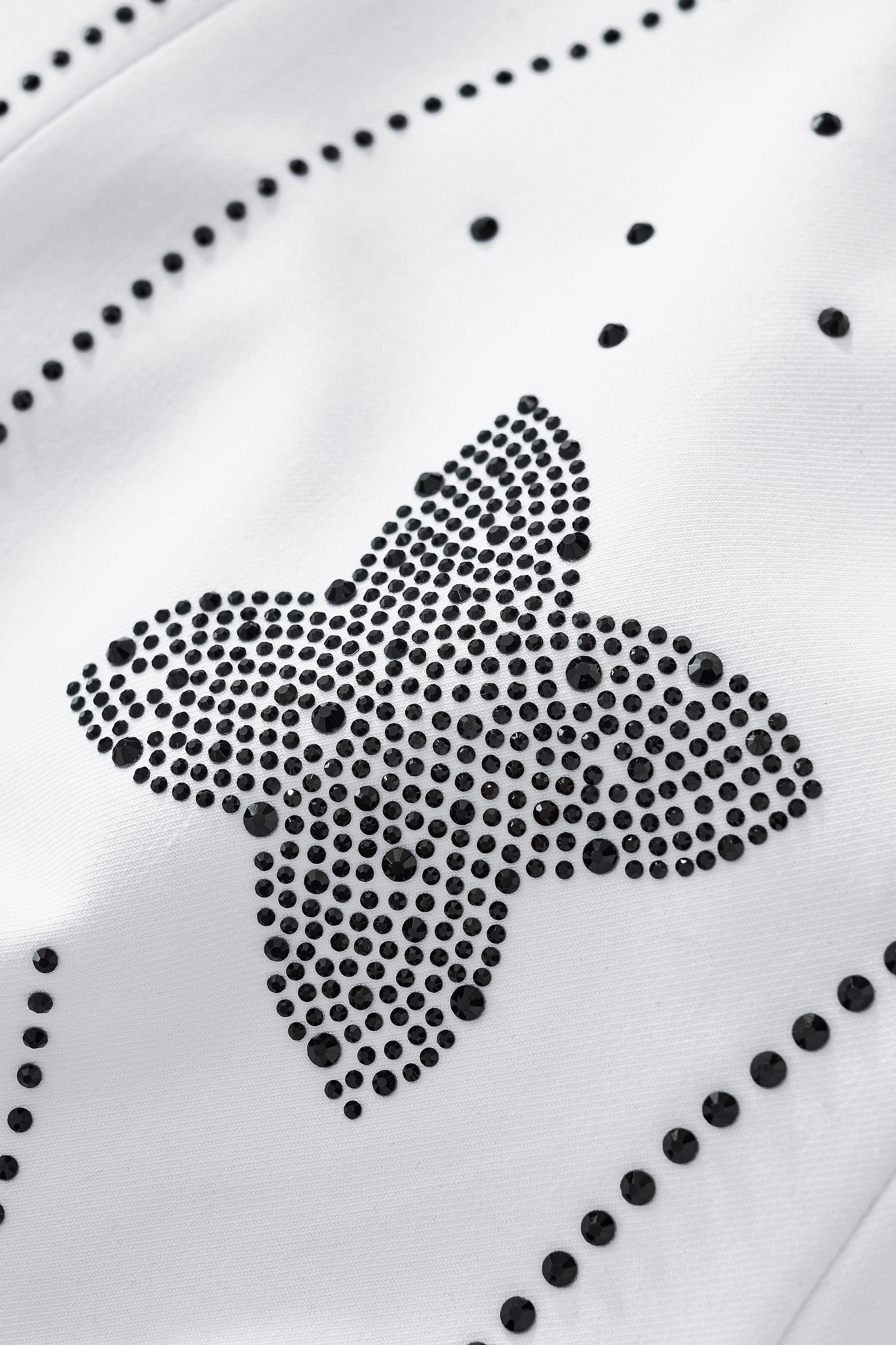 A fashion-forward blazer designed as a statement piece, defined by a tailored silhouette and intricate stone embellishment arranged in flowing patterns that deliver bold visual impact with refined confidence for elevated evening and occasion styling.