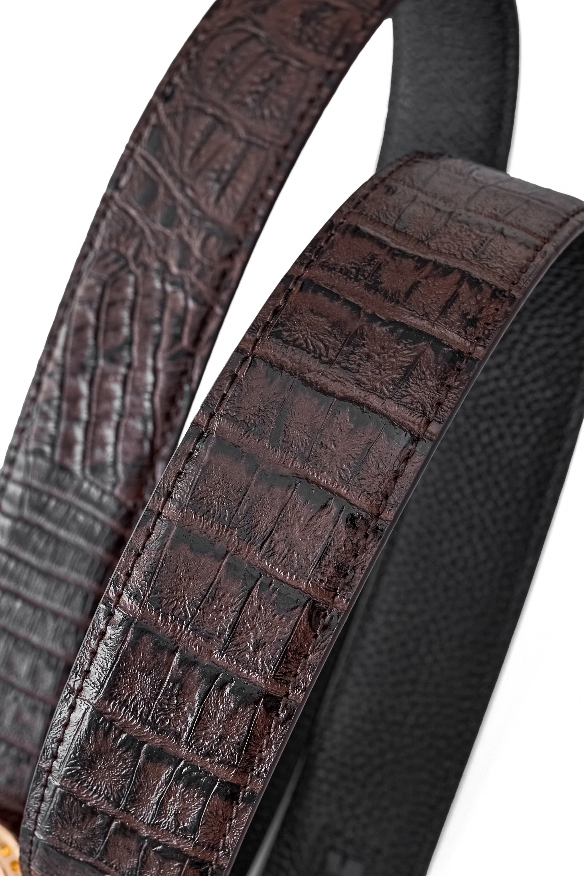 Croc-Embossed Leather Auto BKL Belt – Gold Edition GOLD/COFFEE