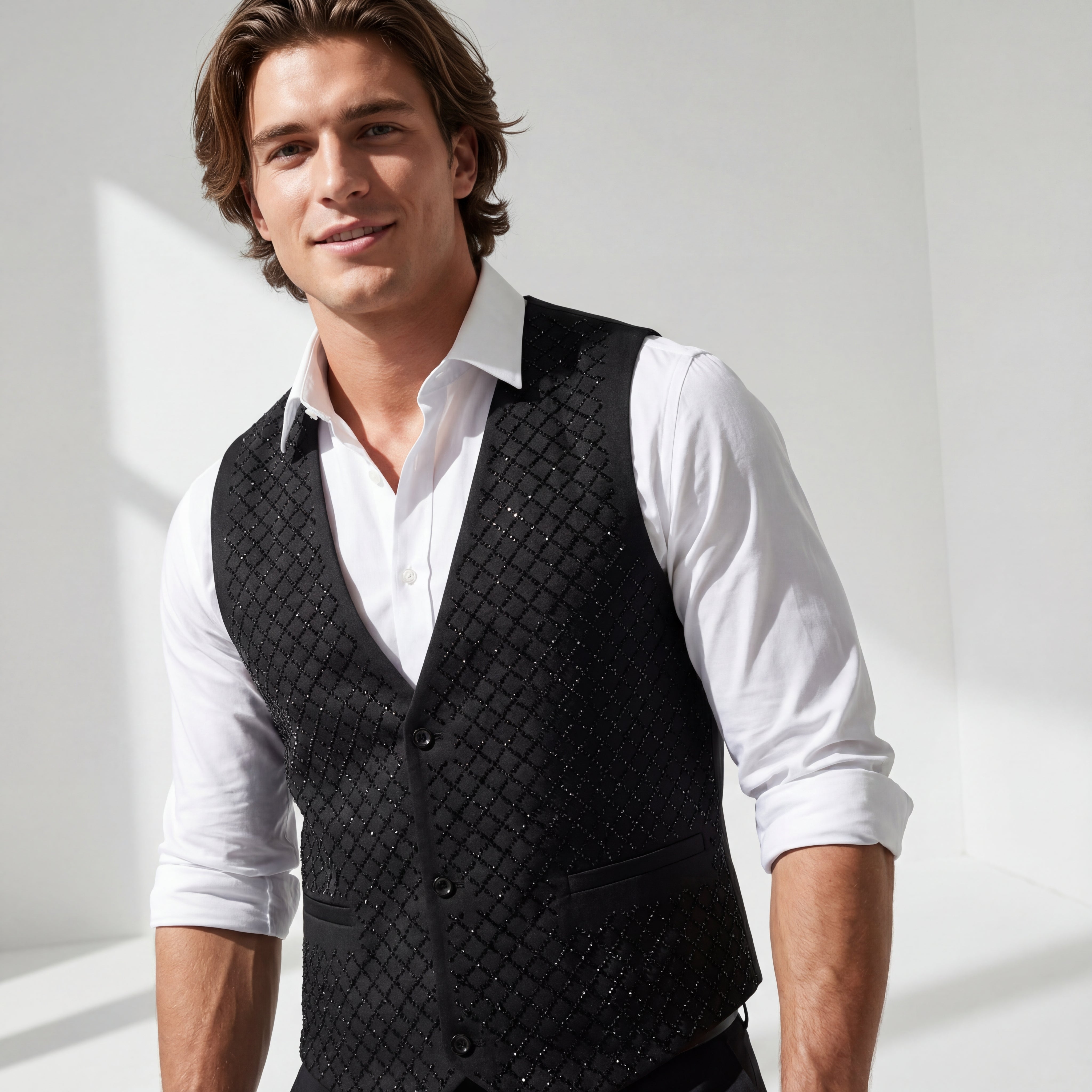 Unveil the aura of sophistication with our formal vests, meticulously crafted with glistening crystals to elevate your formal attire and captivate the room