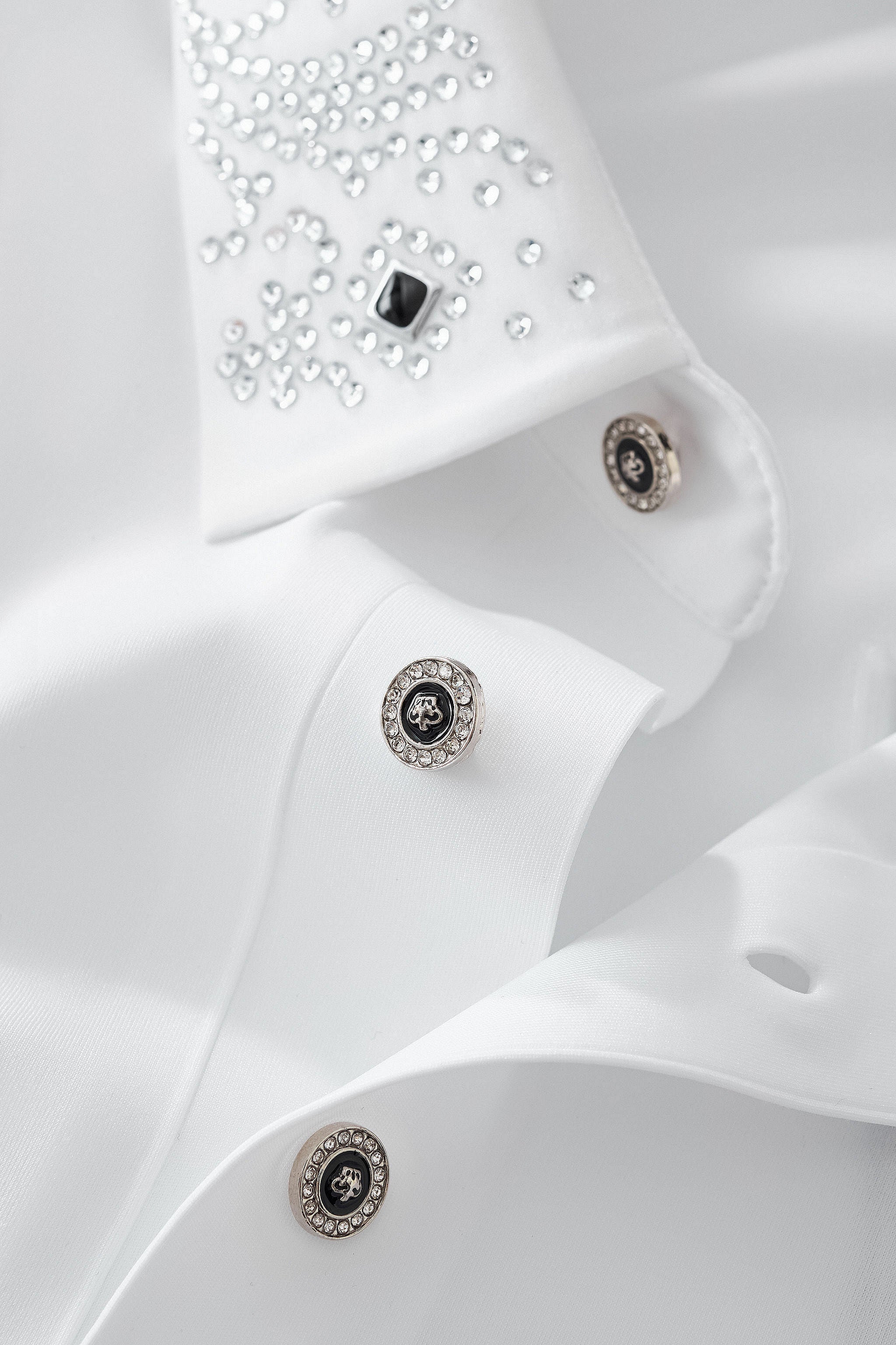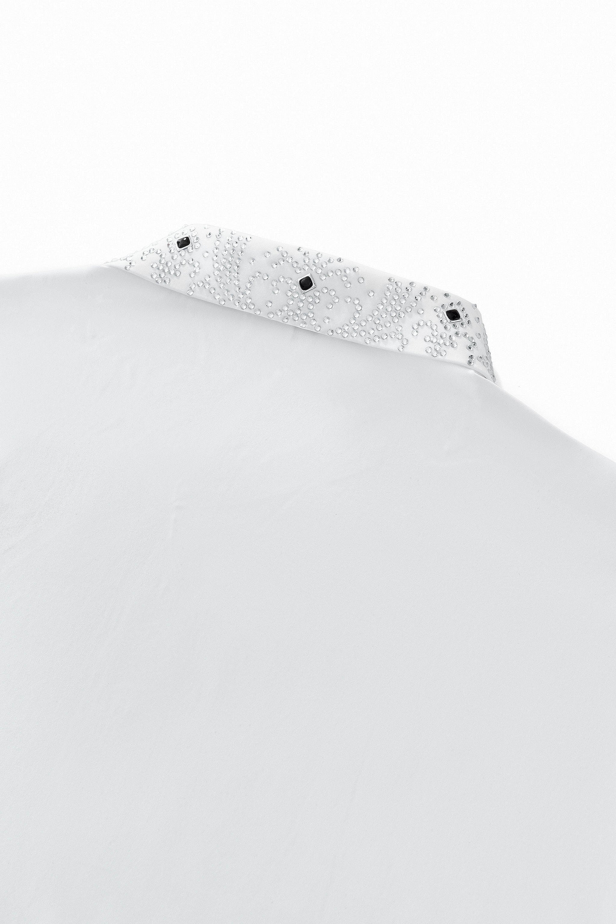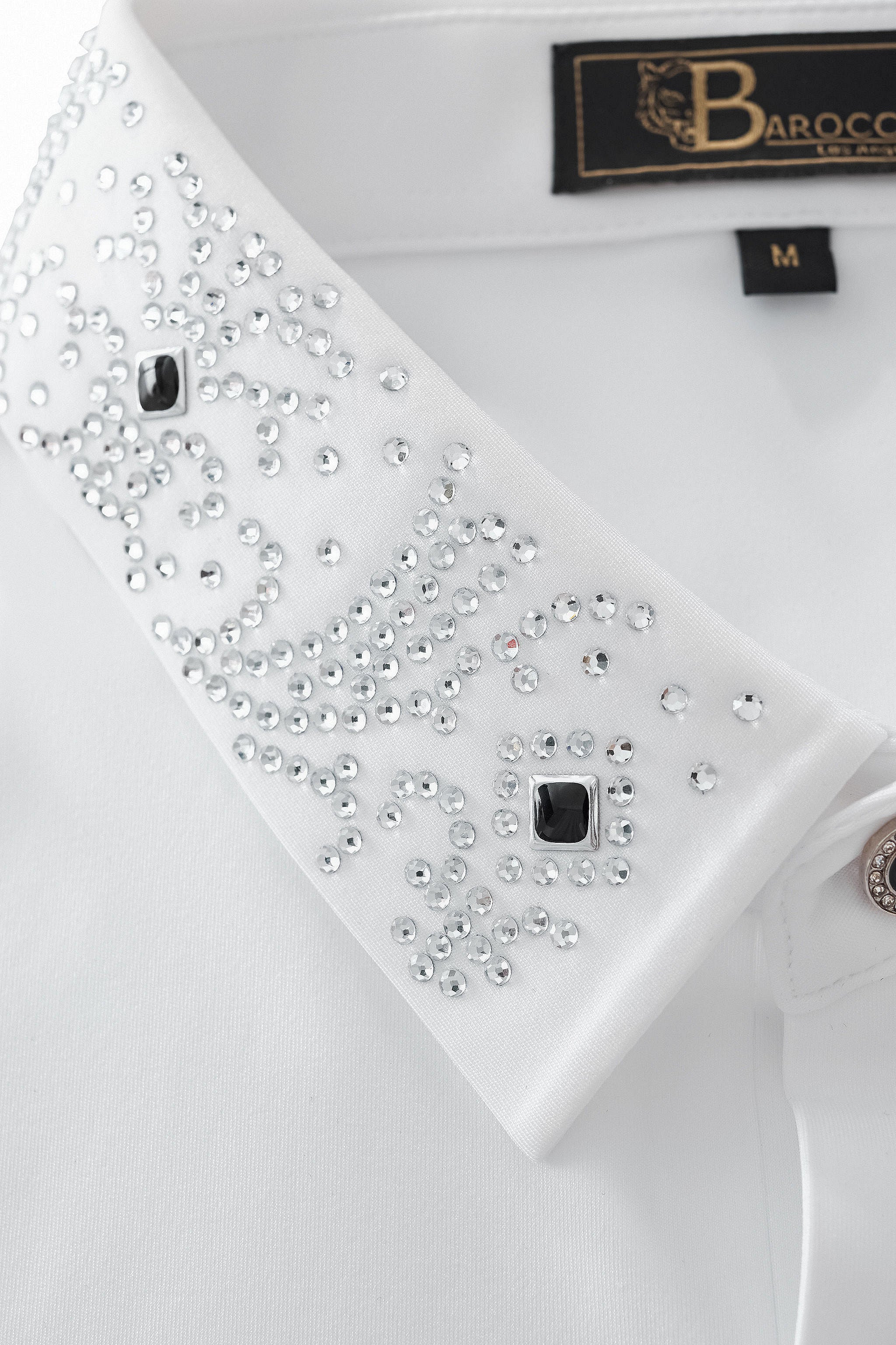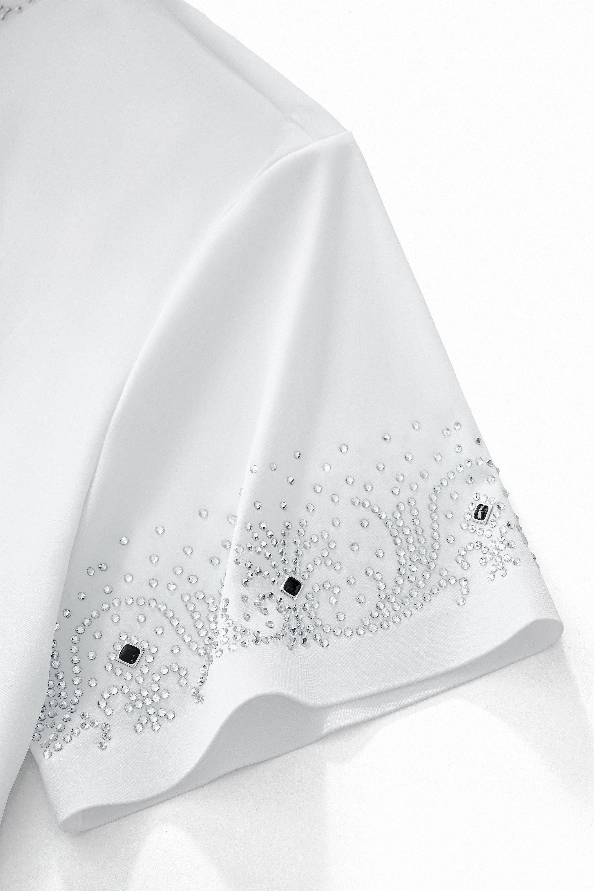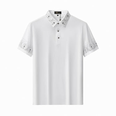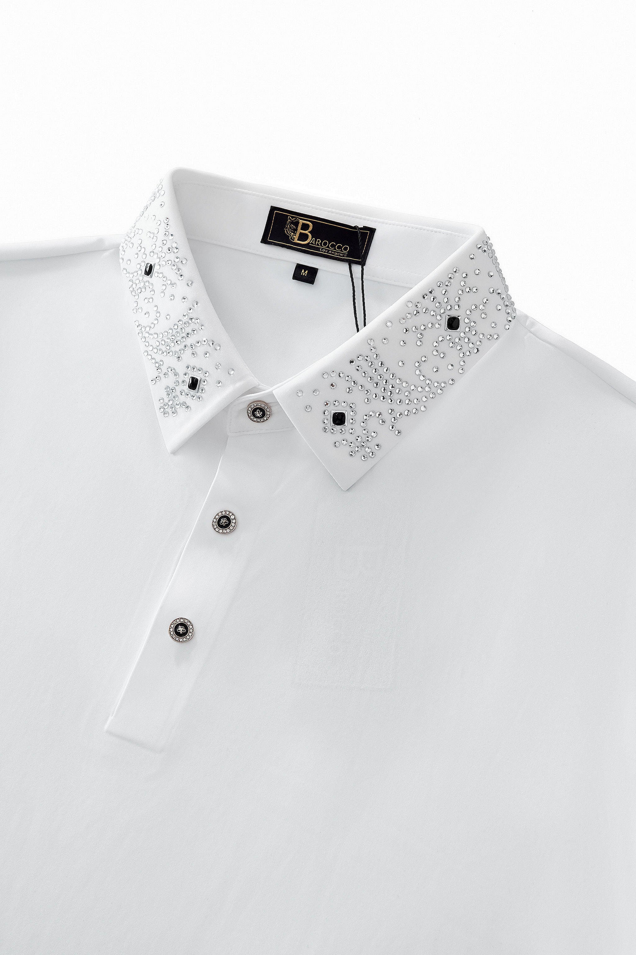 A refined polo designed with an elevated, fashion-forward sensibility, featuring a seamless, stitchless construction accented by decorative detailing at the collar and sleeves that delivers a clean, modern finish with understated luxury appeal.