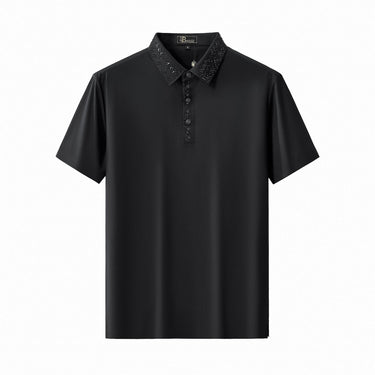 A refined polo designed with an elevated, fashion-forward sensibility, featuring a seamless, stitchless construction highlighted by structured decorative trim along the collar and placket that delivers a clean, modern finish with confident luxury appeal.