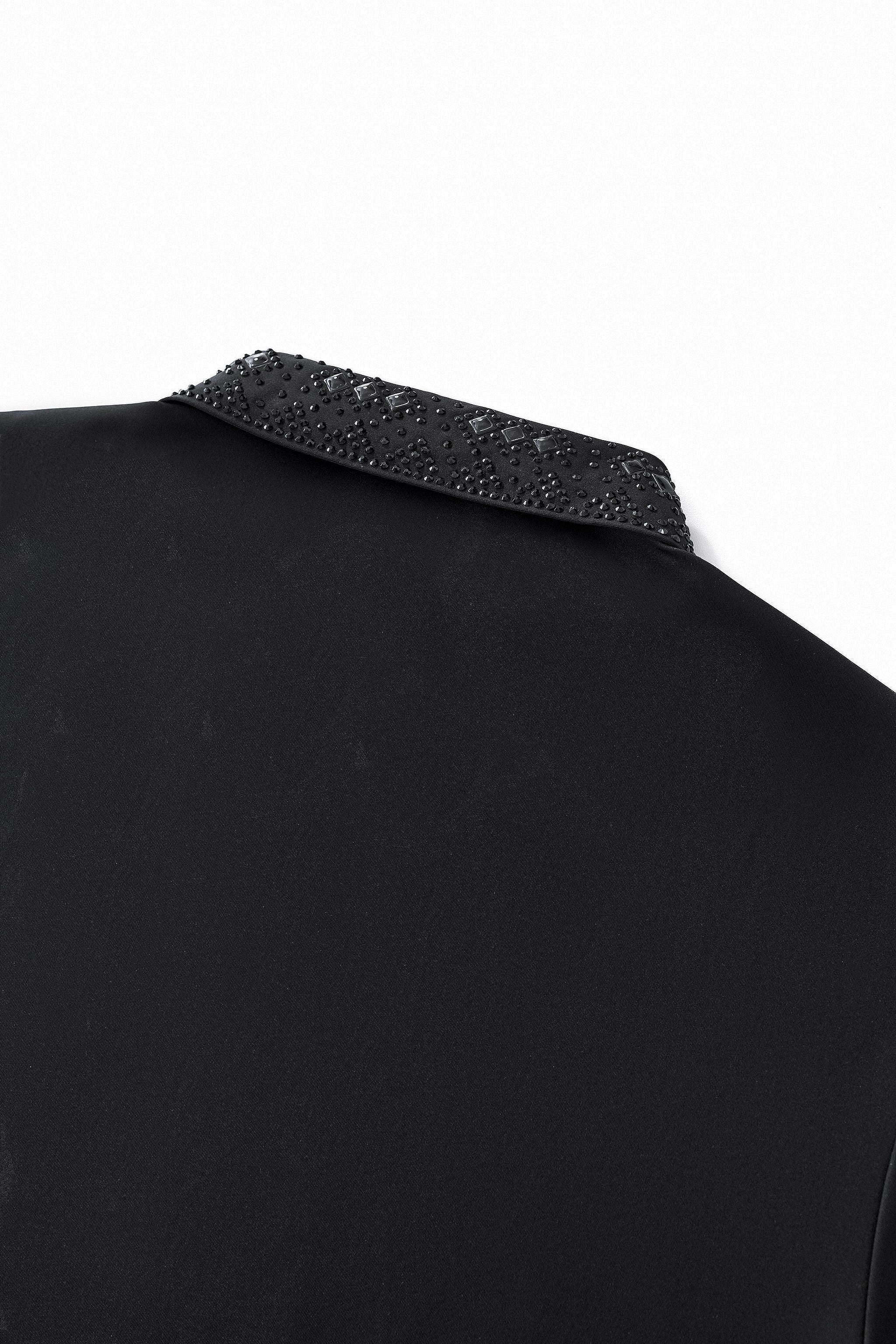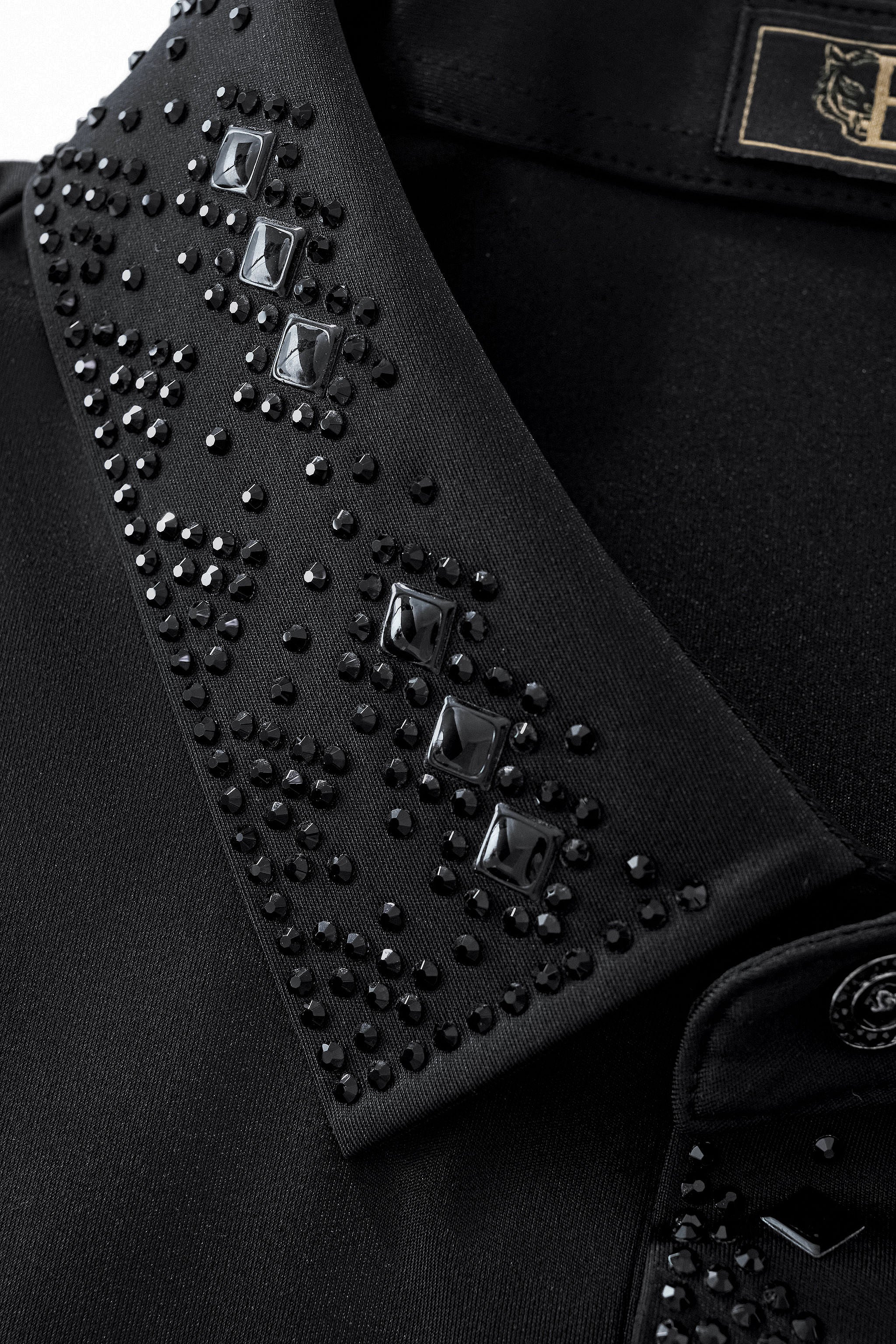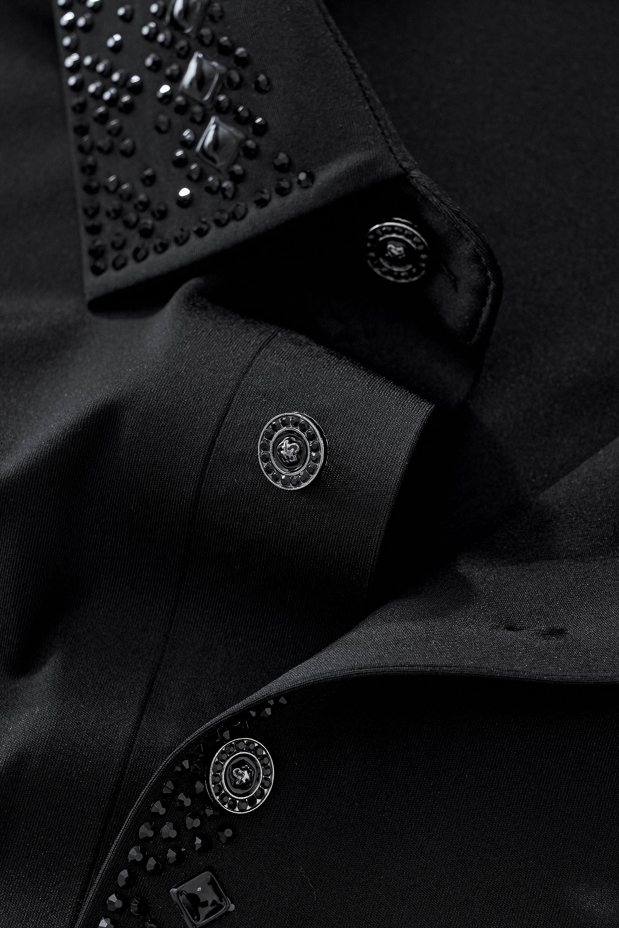 • Structured decorative trim along collar and placket