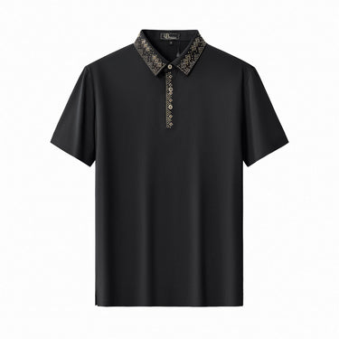 A refined polo designed with an elevated, fashion-forward sensibility, featuring a seamless, stitchless construction highlighted by structured decorative trim along the collar and placket that delivers a clean, modern finish with confident luxury appeal.