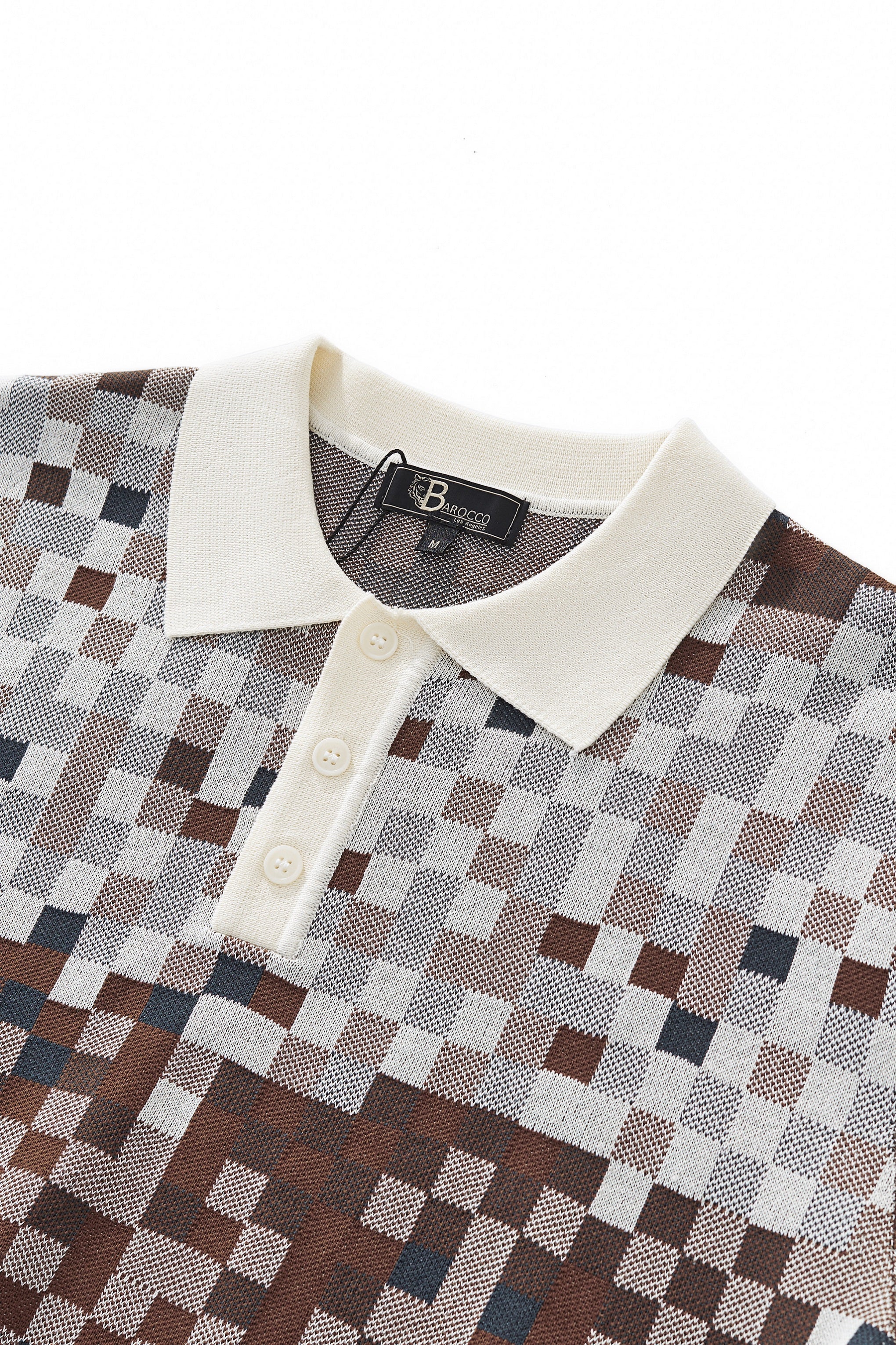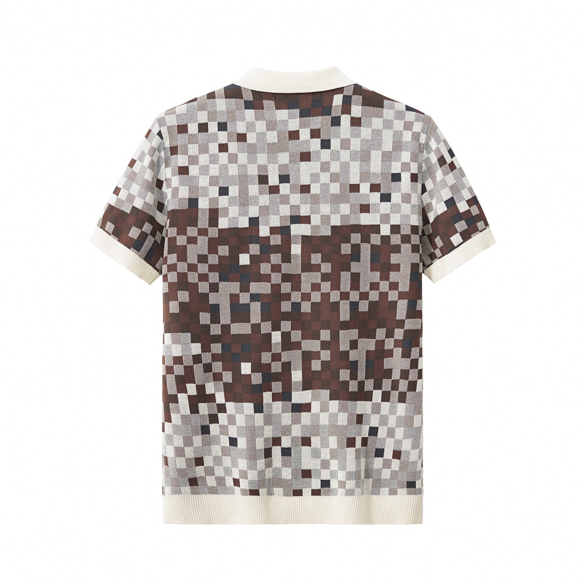 The Pixel Fade Polo is a bold fusion of retro-tech aesthetic and modern knitwear. Featuring a dynamic, all-over pixelated pattern, this statement piece captures motion and depth in every stitch. A refined knit collar and ribbed trims bring classic structure to the digital chaos, while the tailored fit ensures versatility across looks. Whether paired with trousers or casual denim, it delivers sharp, confident impact.