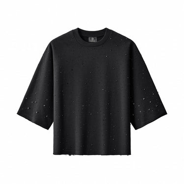 The Stellar Scatter Sweatshirt redefines casual luxury through refined surface detail. Crafted in a cotton-blend fleece, it features an allover scatter of micro studs that create a subtle, celestial effect across a deep black base. The cropped, boxy silhouette with raw-cut edges delivers a modern street-lux profile designed for effortless statement wear.