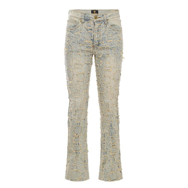 Introducing our denim collection—where classic comfort meets contemporary style. These Heritage Fit jeans are crafted from premium-quality denim to deliver the perfect balance of durability and flexibility for your lifestyle. Featuring a timeless straight-leg silhouette with a modern, tailored edge, they offer a versatile fit that flatters while allowing for easy movement. Distressed patchwork detailing adds a bold, streetwise attitude, creating a unique statement piece for any casual-to-refined wardrobe.