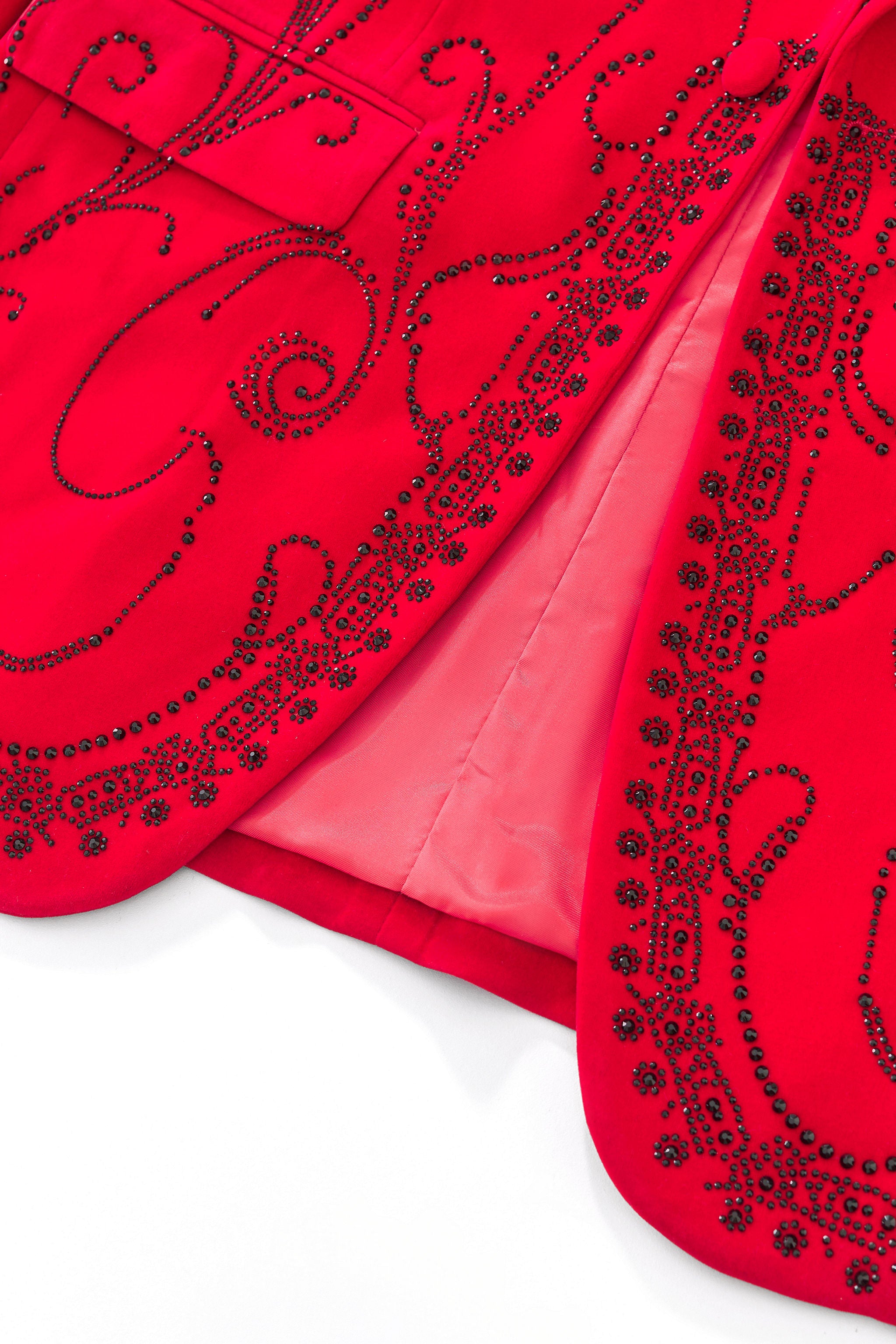 - Tonal scrollwork pattern across front, back, and sleeves