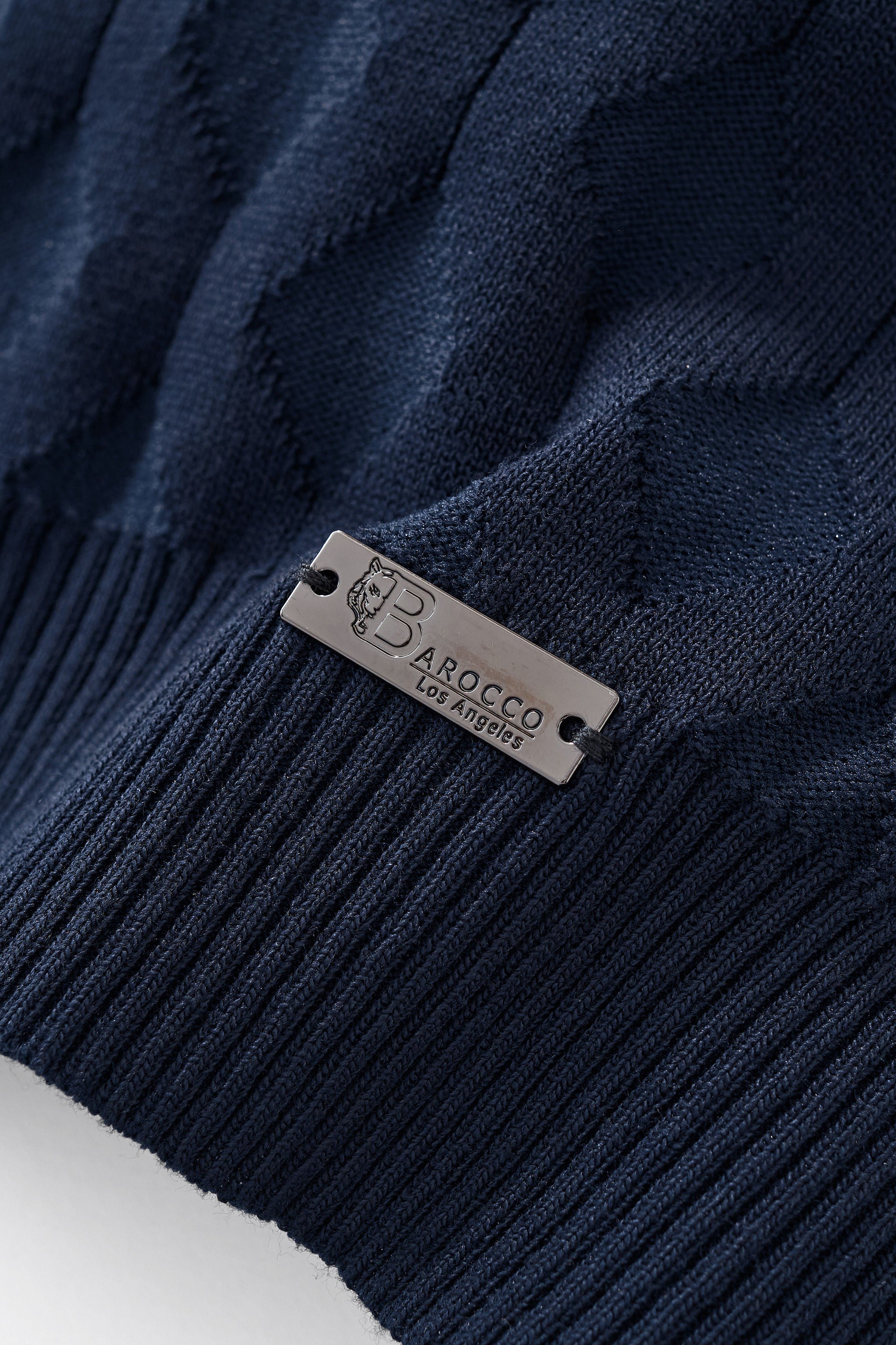 • Textured geometric knit pattern throughout